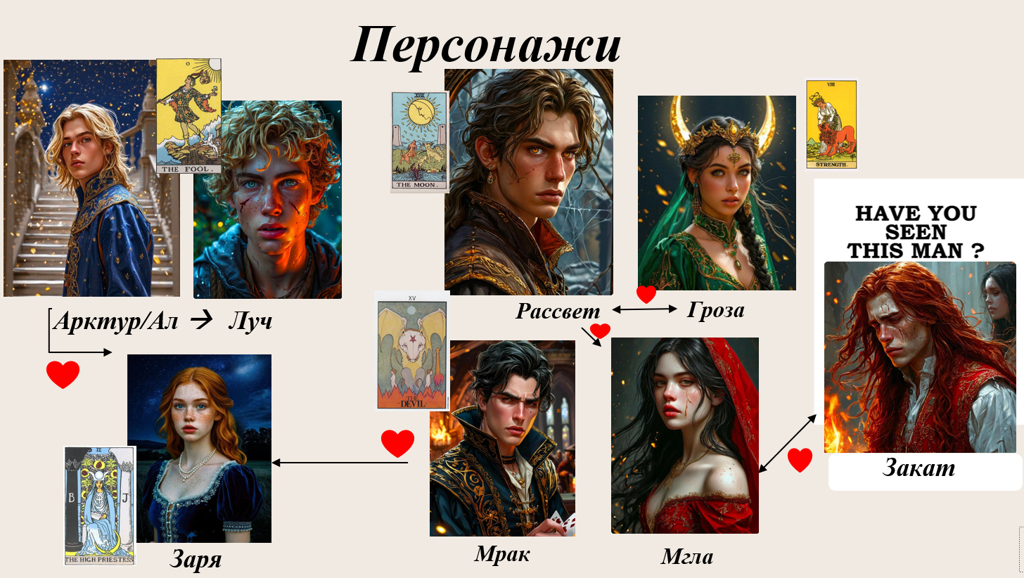В Сказочных (https://author.today/work/456557) все герои и сюжетные арки — это персонажи и сюжеты арканов Таро