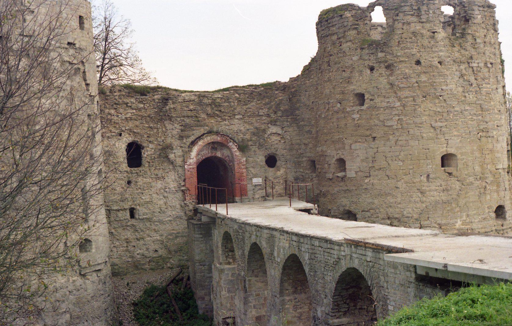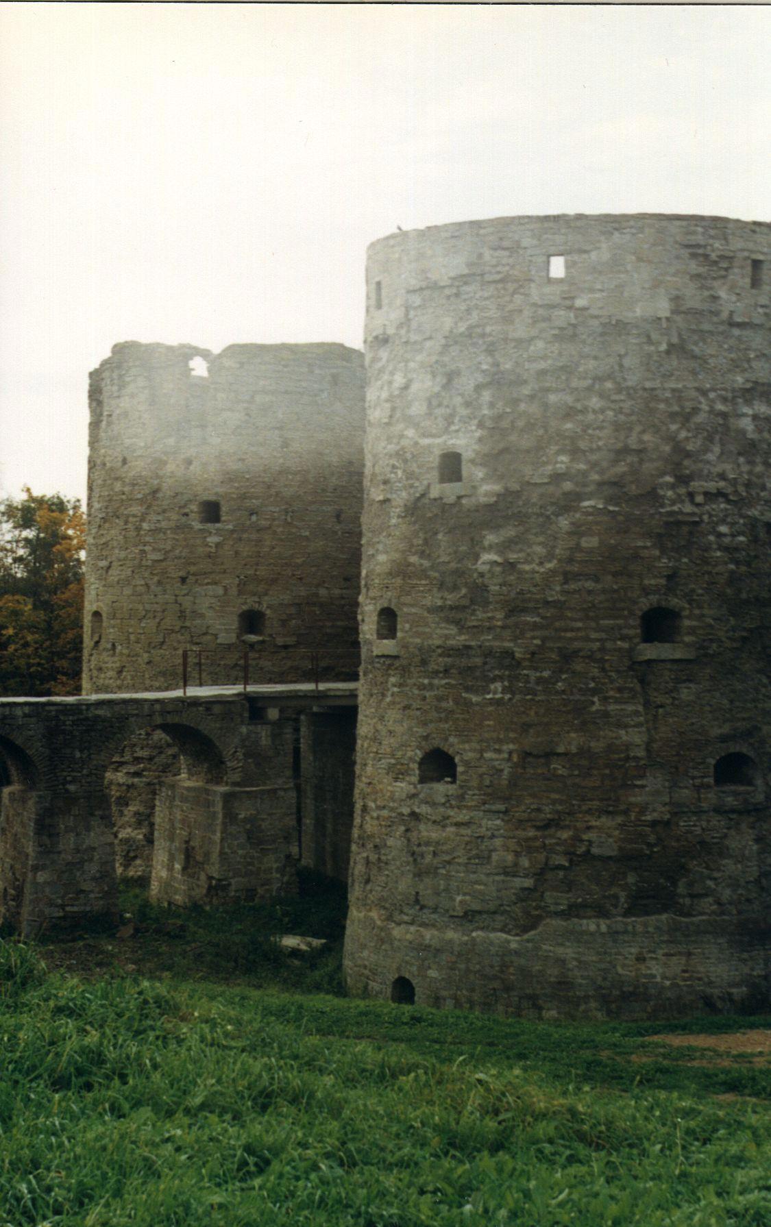 Автор: Маргарита ГуминенкоВ крепости Копорье мы с сестрой были дважды. Первый раз в 1989 году. Увы, ч.б. фото найти не могу. Надеюсь что найду плёнку и отсканирую. А вот второй раз, в 1998 году, мы снимали на Kodak, фото делали в ателье и успели их отсканировать. Конечно это уже не совсем тот раскардач, который был в 1989-м, но и хуже чем сейчас. По сути, крепость даже не была ничем укрыта и продолжала разрушаться. Сейчас хотя бы укрепили мост, ворота и покрыли крышей две уцелевшие башни. Да и разрушенную церковь внутри крепости частично восстановили. Мы её видели в живописно заросших руинах, поэтому даже фотографировать не стали. Нечего было.