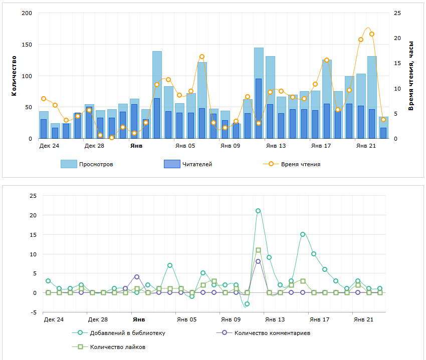 Но качество приходящих гораздо выше среднего! Потому что читают с первой части, а значит это новые люди, и читают сразу много. Ещё и число подписок на количество просмотревших впечатляющее.