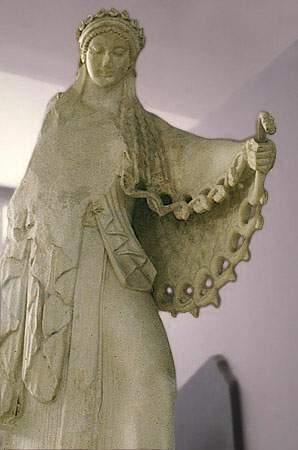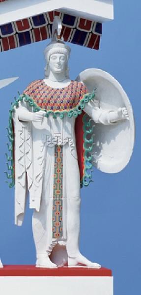 (На фото - копия статуи богини Афины с фронтона Парфенона. Раскрашена накидка-эгида.)