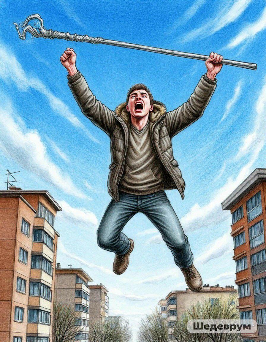 – А ничего так, тяжёленький, – протянул он. – Жаль, что не метла Бабы-яги. Я бы полетал.