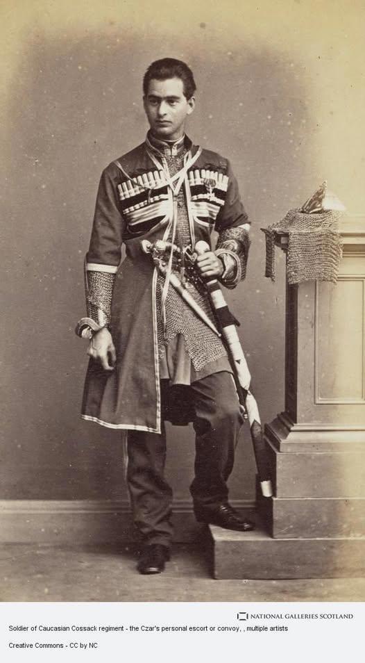 2) Фото конца 19 века, а на казаке Собственного Его Императорского Величества Конвоя, натуральная кольчуга. То что на Кавказе её продолжали носить это понятно, но что и в свите царя это делали, вот это уже неожиданно.