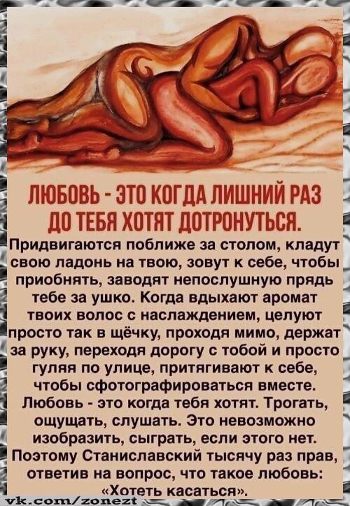 Автор: Николай БергЗабавно и грустно - похоже, что такое понятие как "Любовь" из взаимоотношений мужчин и женщин убрано напрочь. Сколь ни смотрел всяких этих "семейных психологов" и прочих знатоков "отношений" (до чего же мерзкое слово в данном контексте, сразу вспоминается абстрактная реприза из "Монти Пайтона", где два адвоката - представитель парня и представитель девушки обсуждают детали будущего свидания - отношения со сношением - что можно, что нельзя, сколько каких поцелуев и куда и сколько минут на то на се и ты пы с подписями под договором обеих сторон - тогда это было юмором абсурдным, сейчас уже считай реальность), так вот, все эти уроды про любовь, как составляющую - не говорили.