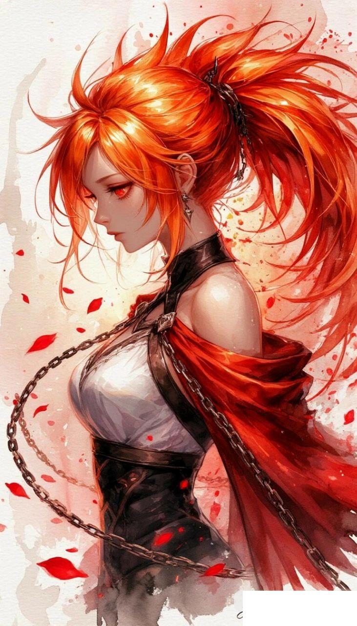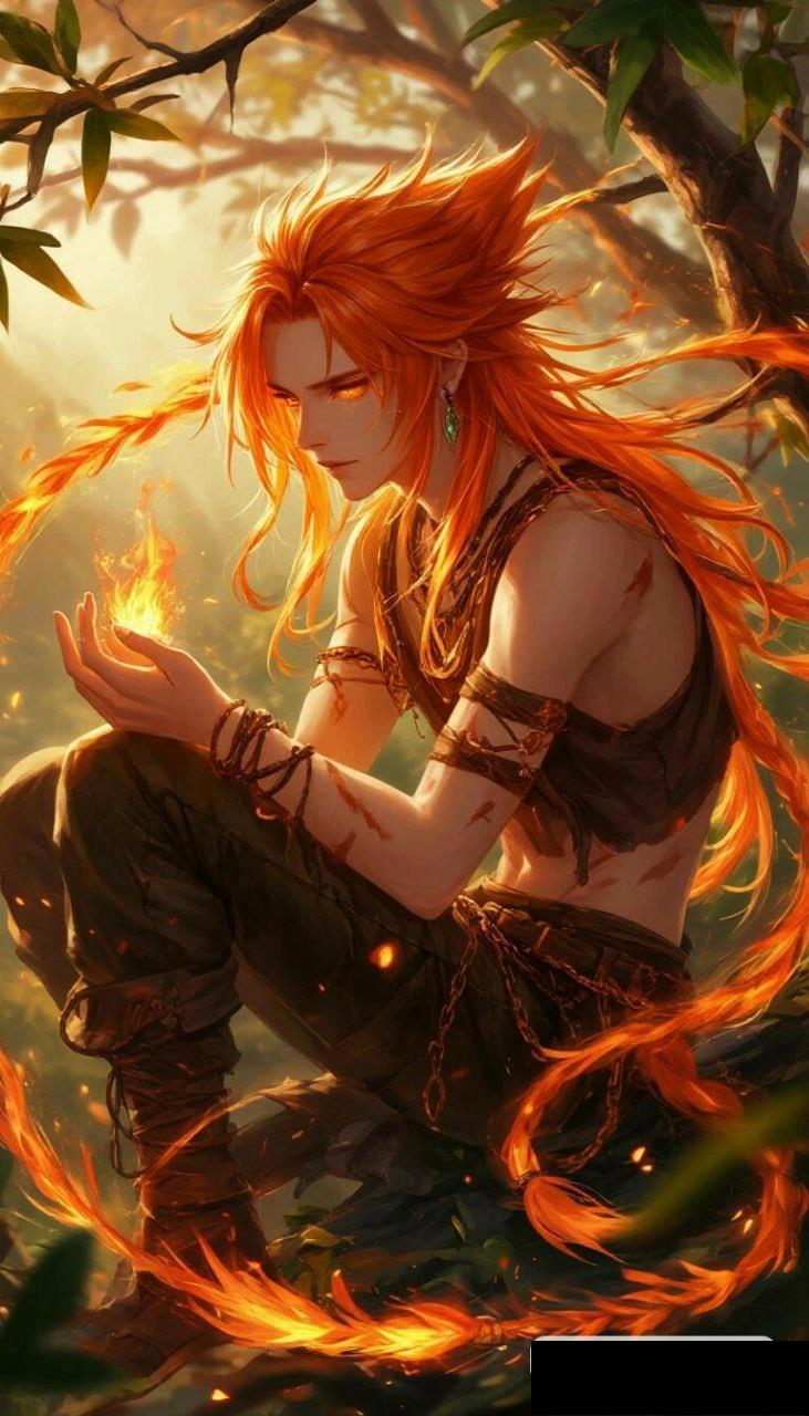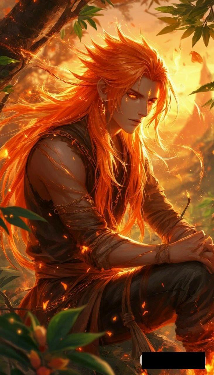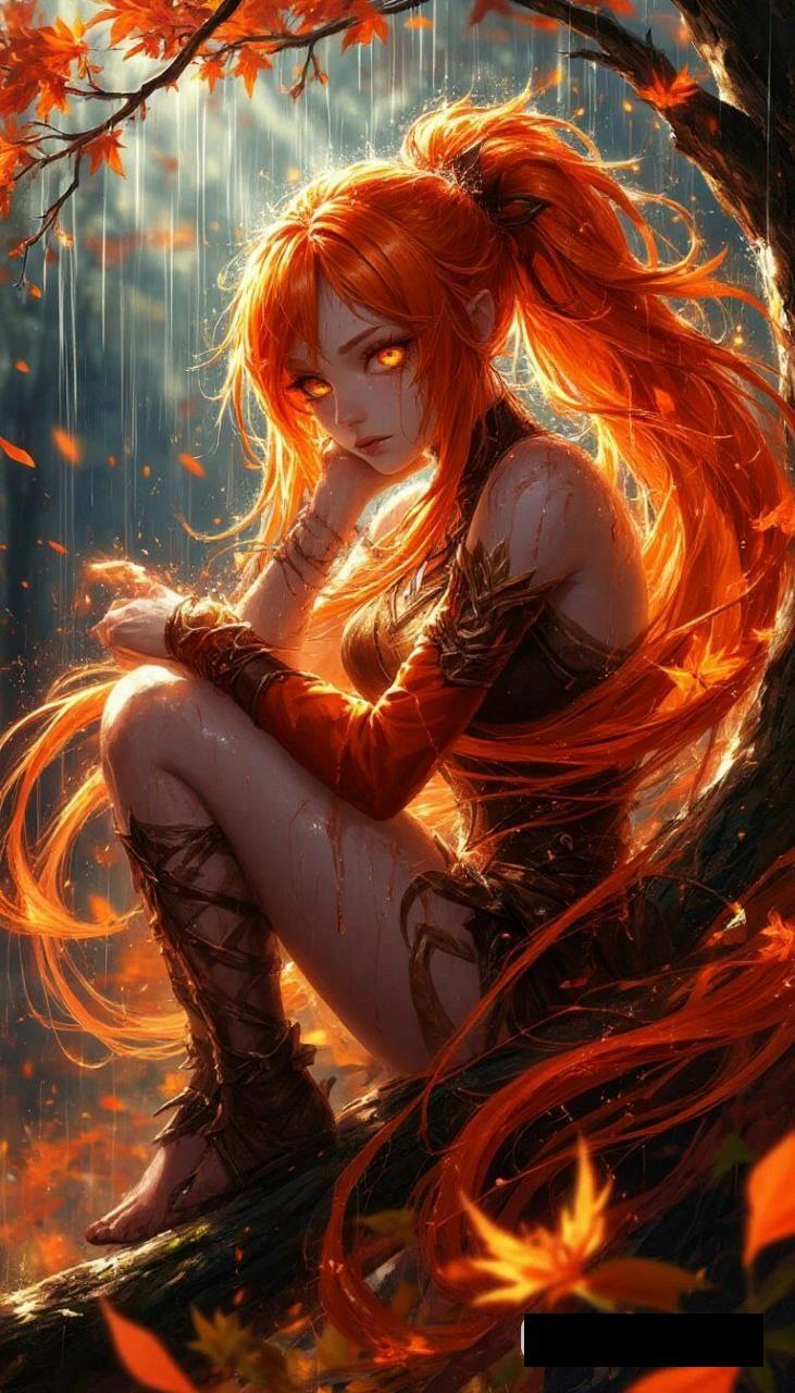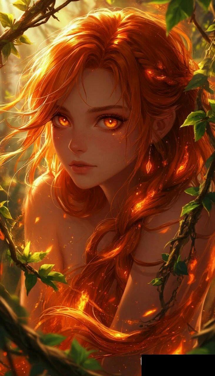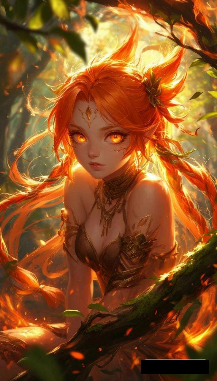 Таков ее примерный облик. Эльха озорная и эмпульсивная (как все элементали пламенной стихии; из крохотной искорки - в бушующее пламя). Ее одежды сотканы из алых пламенеющих лент, поэтому Сайгару эта элементаль часто напоминает птицу феникс.