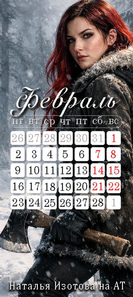 Ну что ж, в этом году продолжаю традицию самодельных календарей. В феврале аж два варианта. Это Рут из "Хозяина сгоревшей хижины", и она вернулась в родную деревню, из которой благополучно сбежала несколько лет назад. Но от судьбы не убежишь, тем более, когда это действительно нечто большее, чем громкое слово. И то, что в детстве казалось странным, взрослому откроется во всём своем ужасе.