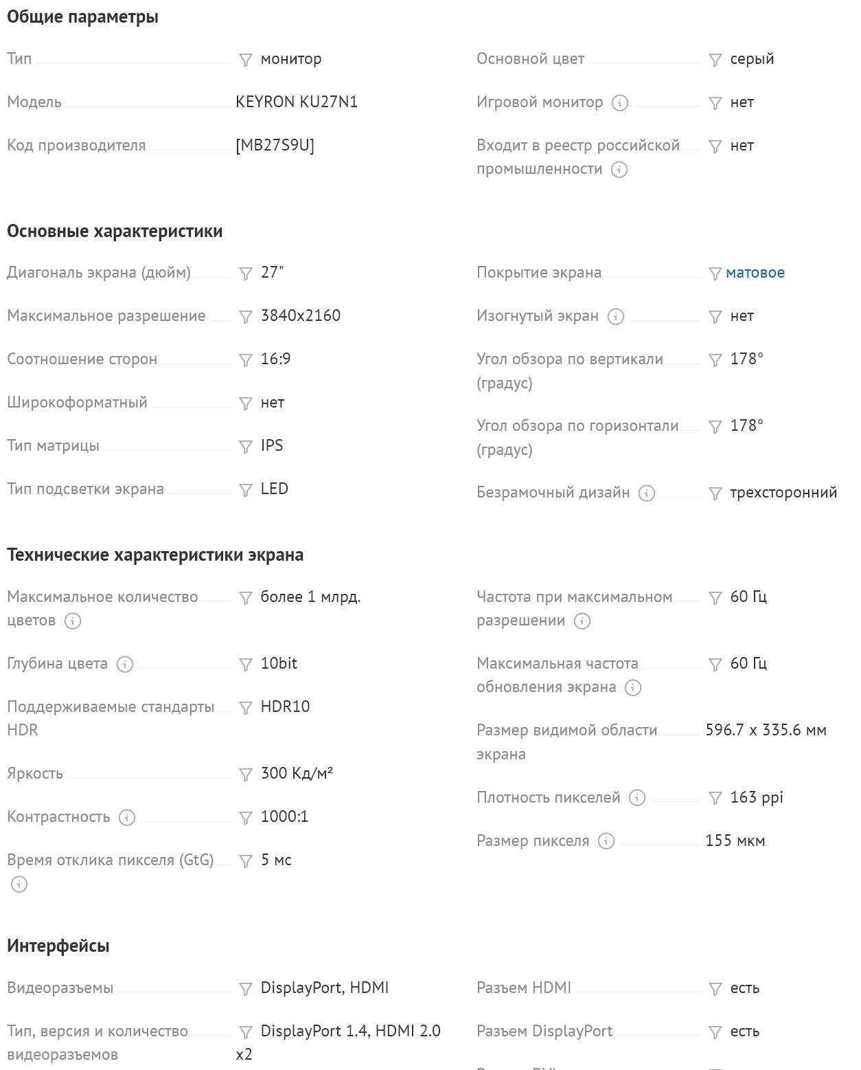 Изображение выводится на 27" Монитор KEYRON KU27N1 серый