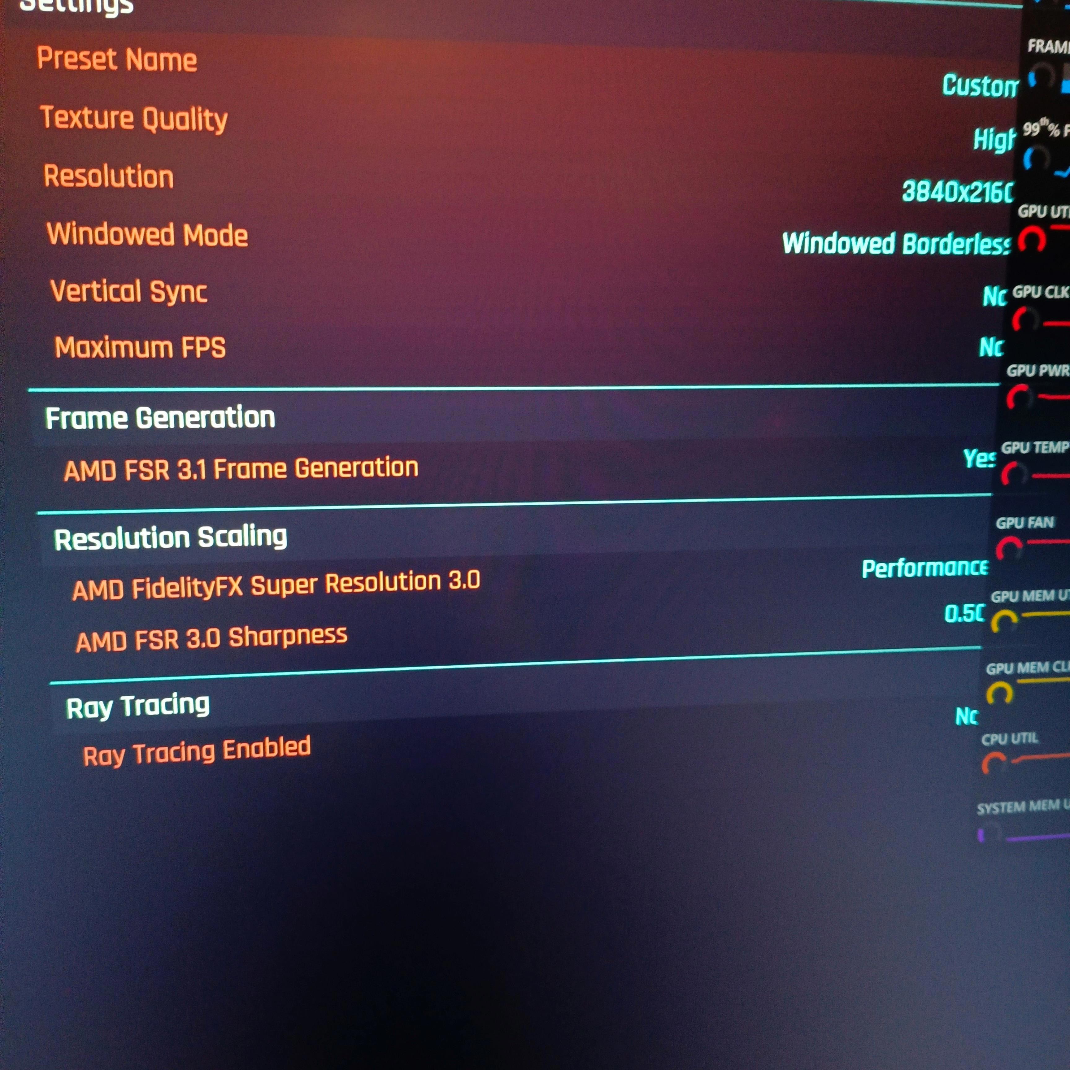 При запуске игры в 4к генерация кадров особо не спасает, так как карта начинает тротлить(сбрасывать частоты ниже 1200 и снижать напряжение ниже 105 ватт) что снижает ровность и плавность игрового процесса, при том что усреднённые значения выглядят лучше, чем в 2к качество