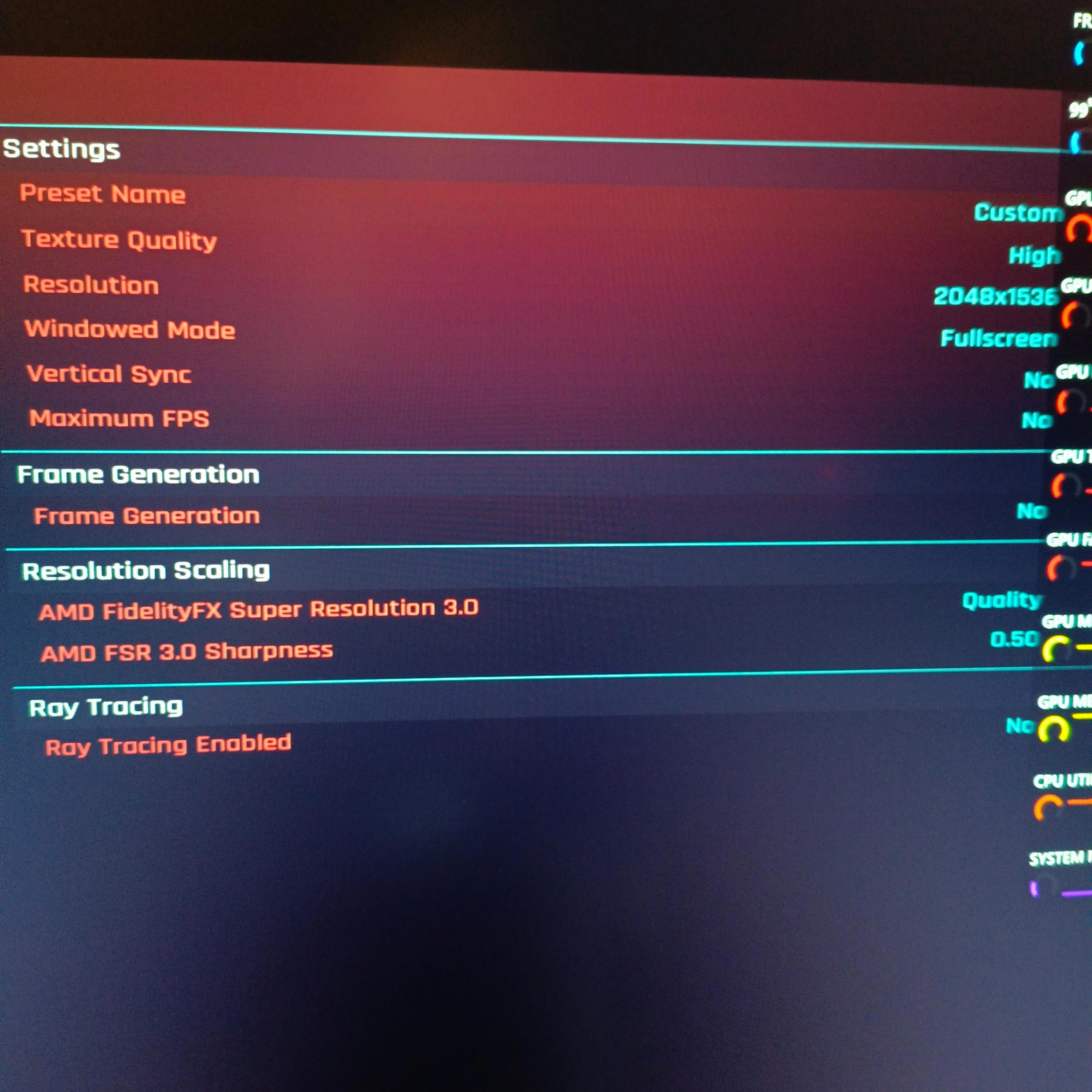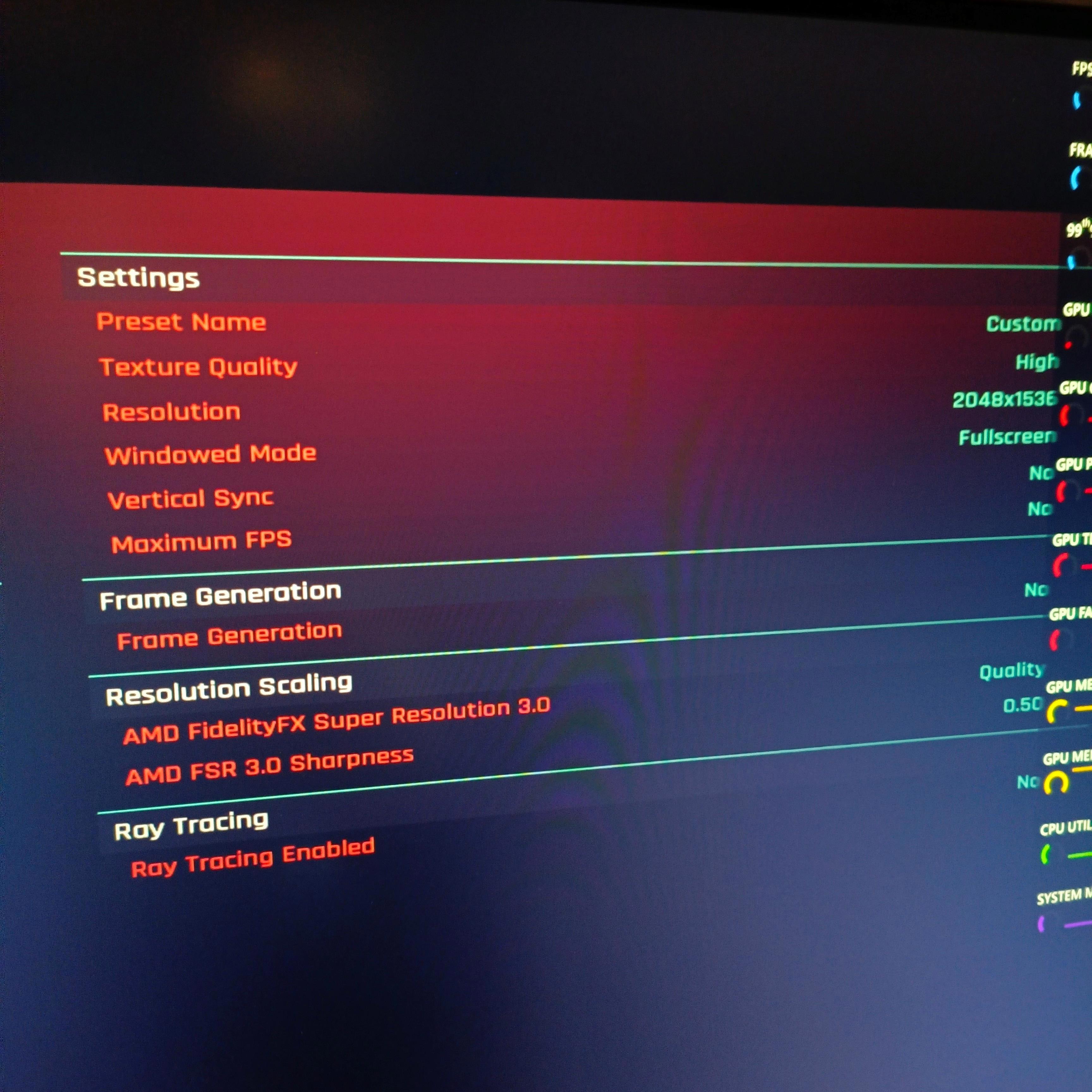 Тестирование проводится в разрешениях 2к и 2048 на 1536(4*3). С использованием прессета качество и производительность FSR 3, с использованием и без генерации кадров.