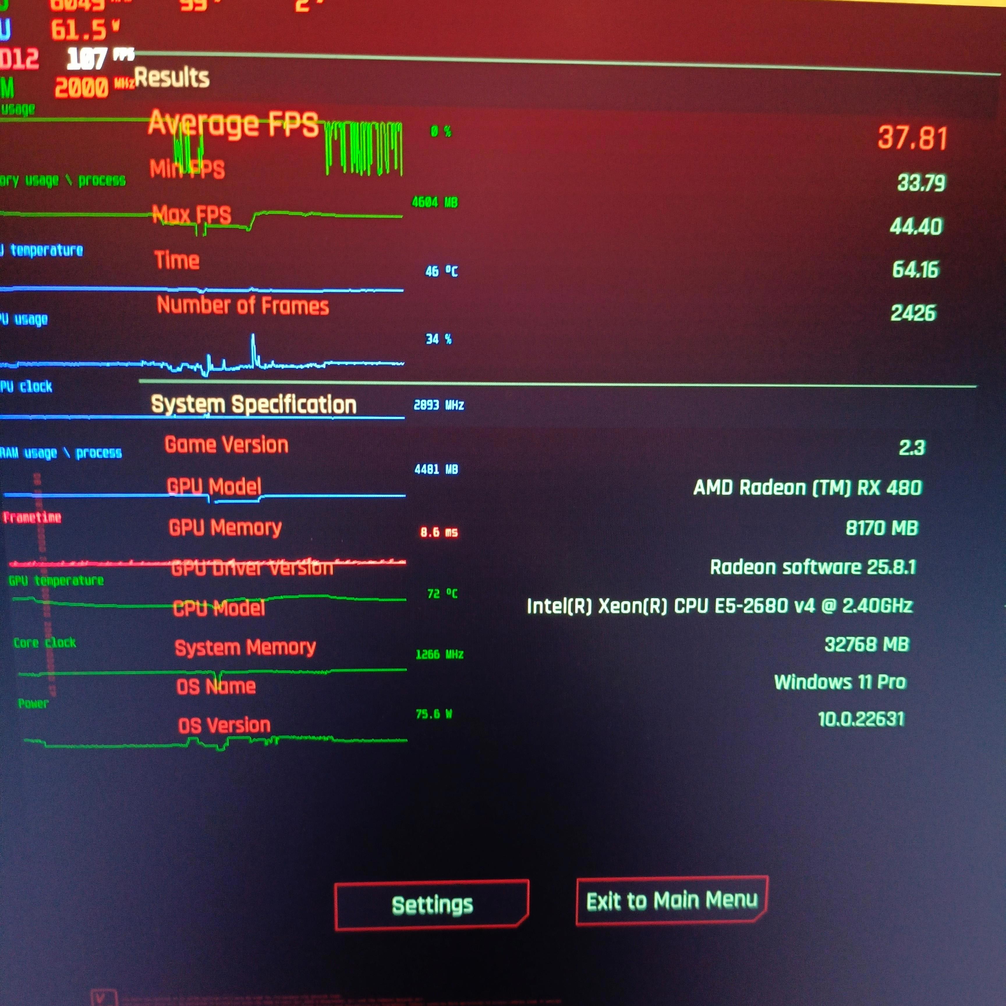 Тестирование проводится в игре киберпанк 2077 патч 2.3