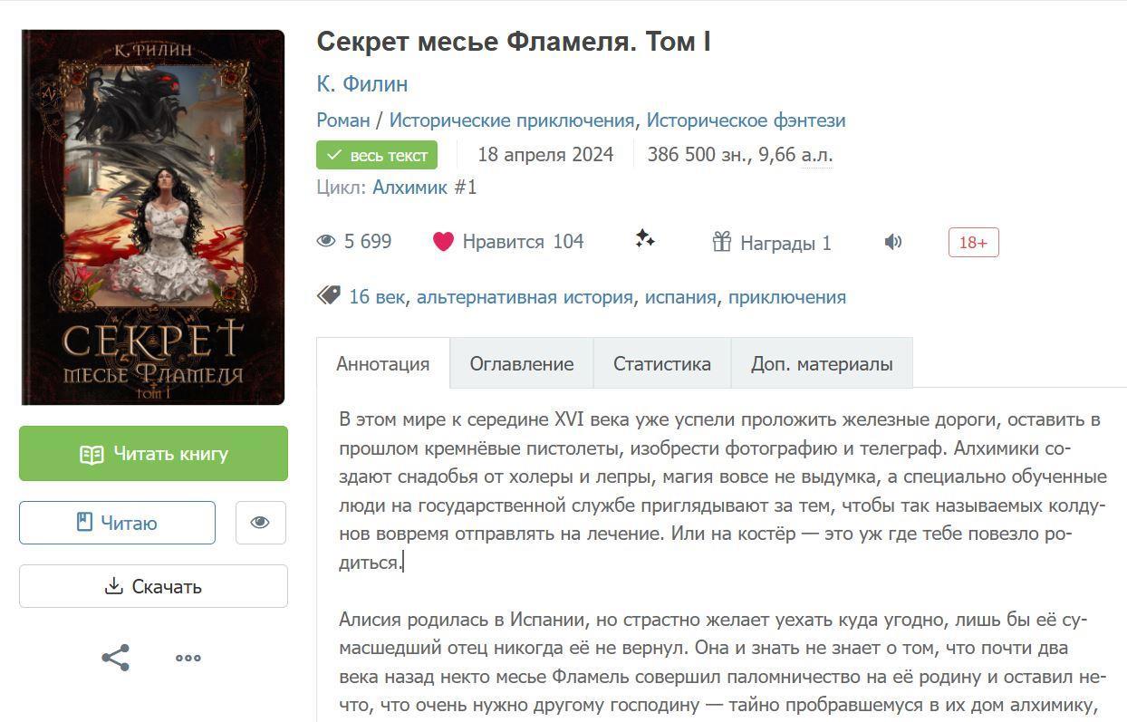 Отзыв на "Секрет месье Фламеля. Том I" -- К. Филин