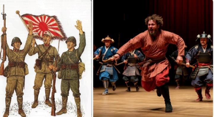 Ну и режиссёр возомнив себя гибридом Станиславского и Питера Устинова решил ввести в спектакль исторический подтекст, согласно которому в конце спектакля, на заднем плане должны были пройти японские солдаты времён Второй мировой.