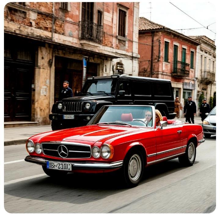Незадолго до этого, она посетила родной город и произвела там фурор, рассекая по нему на красном Мерседесе кабриолете с джипом охраны в эскорте.