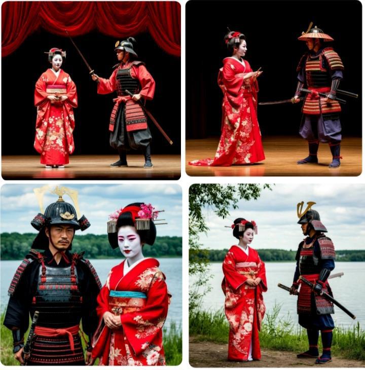 Поставками костюмов и аксессуаров занимался помощнк Молотка Сема Одессит, который мог достать всё. И кимоно и сопутствующие им предметы были доставлены в срок и даже японская военная форма Второй мировой была им найдена, но вот размеры были маленькие, японские. И тут Светлана нашла гениальное решение вопроса. Она пригласила на роли японских солдат местных школьников. Репетиции и примерки проводили непосредственно в школьном спортзале и на спектакль их должен был привезти автобус из под турецких рабочих. Но любой самый точный часовой механизм, может затормозить обыкновенная песчинка...