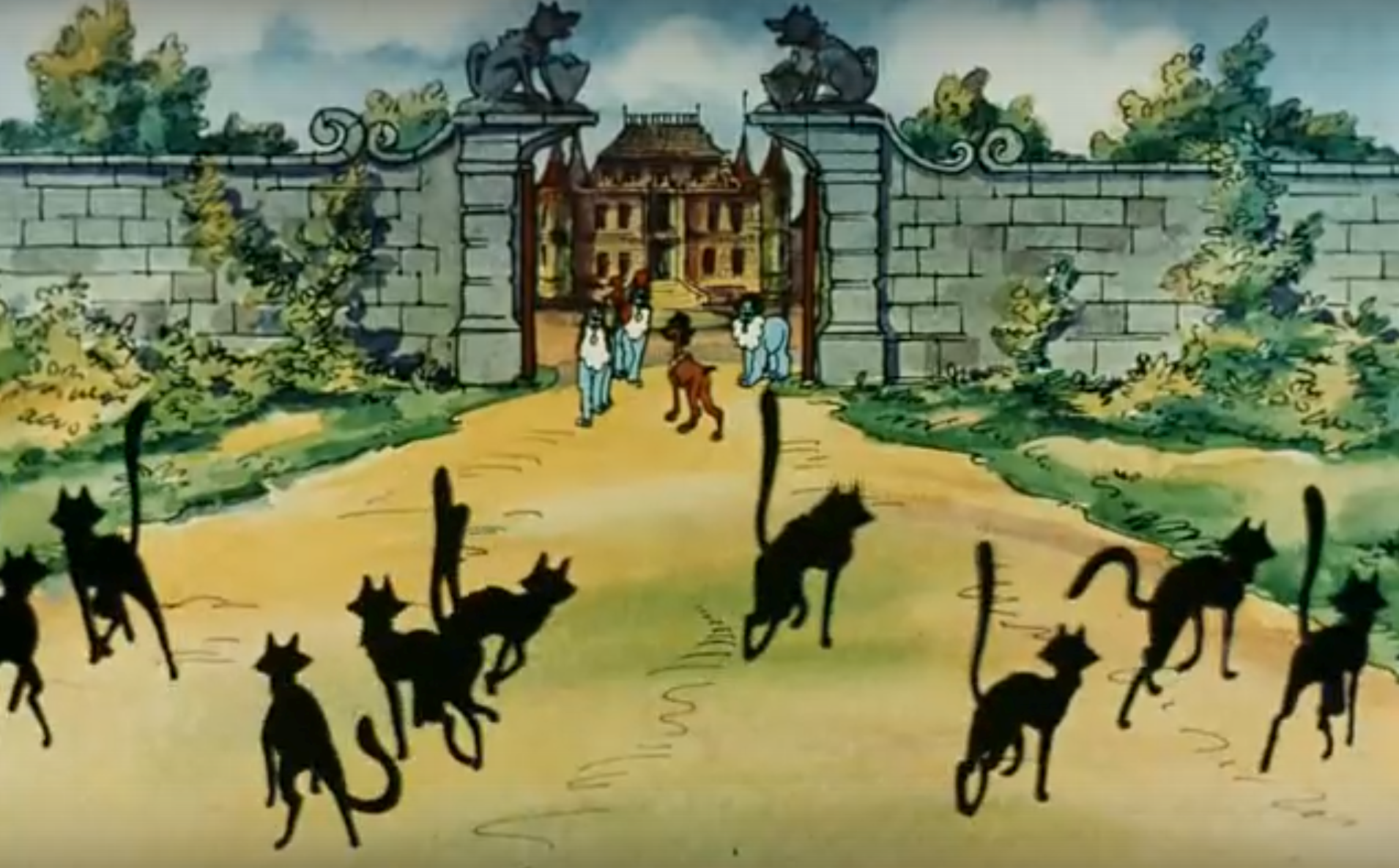 Верный гасконец со своими новыми друзьями с королевской псарни — Толстяком, Красавчиком и Благородным — отправляется в Англию.