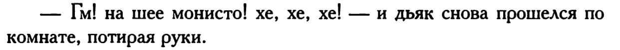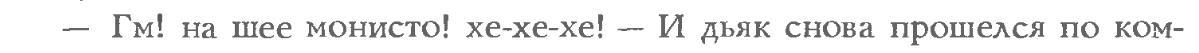 — Гм! на шее монисто! хе, хе, хе! — и дьяк снова прошелся по комнате, потирая руки.