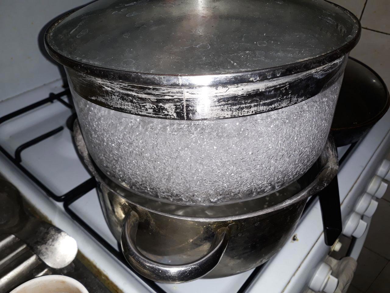 На балконе на столе стояла кастрюля с водой. Занёс её в кухню, поставил на газовую плиту. После нескольких попыток мне удалось снять с неё крышку.