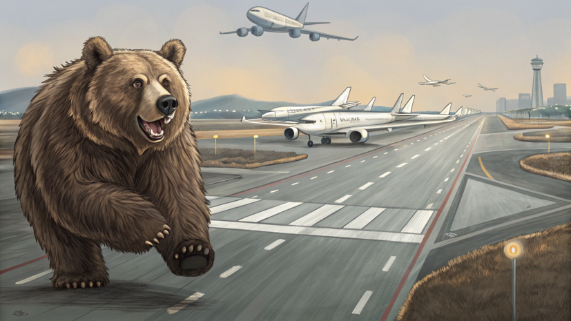 На территорию воздушной гавани каким-то непонятным, даже необъяснимым образом проник взрослый бурый медведь. Косолапый без каких-либо проблем спокойно пересёк взлётно-посадочную полосу, ничуть не пострадав от садившихся и поднимавшихся самолётов, и совсем по-человечески, усевшись по-турецки на газоне, отделяющем рулёжные дорожки аэропорта от ВПП, стал с любопытством наблюдать за работой аэропорта. Эти туда-сюда сновавшие блестящие самолётики ему очень нравились. Охотники не дадут соврать, мишки вообще очень любопытные, из-за этого они часто в беду и попадают.