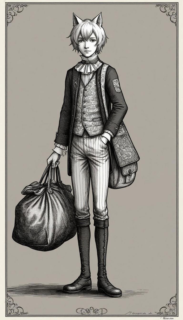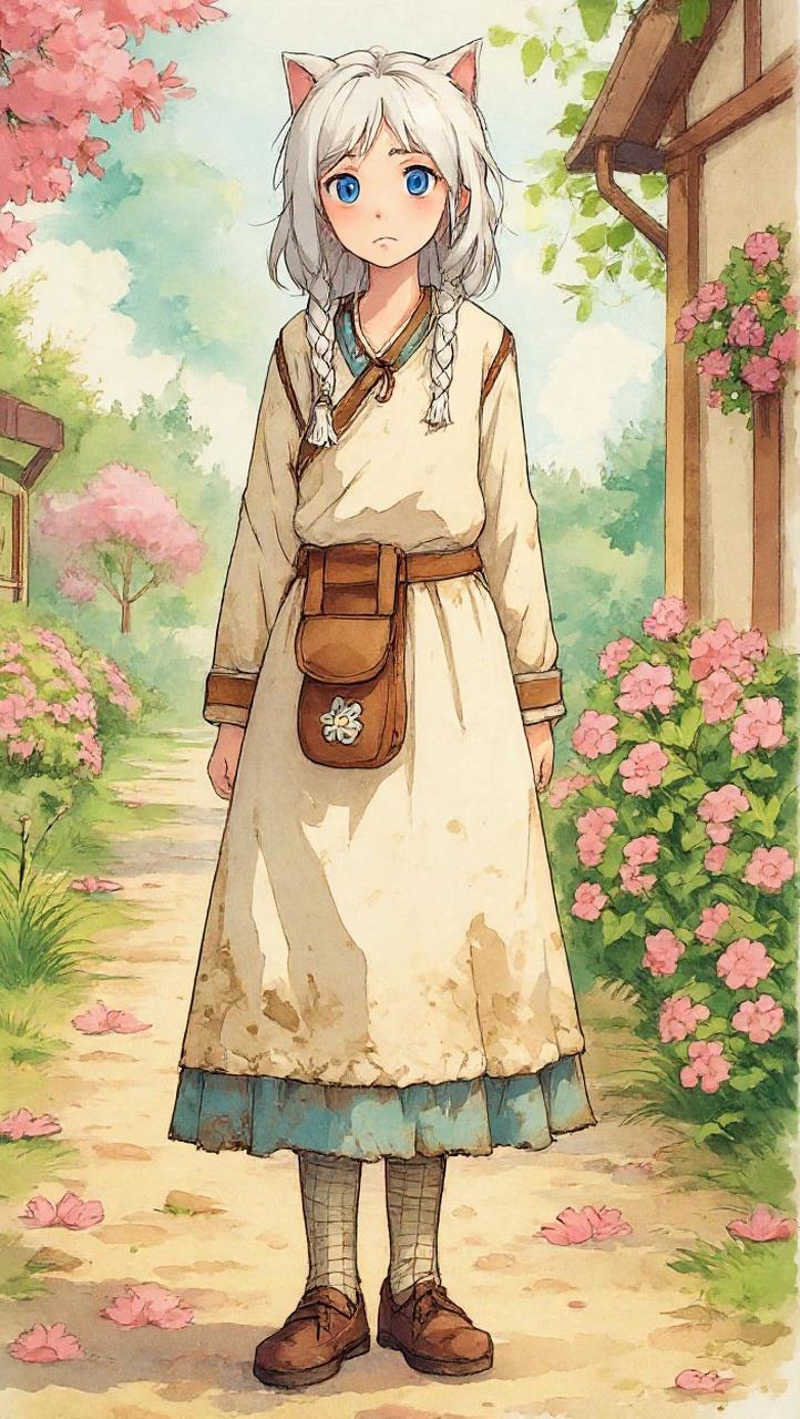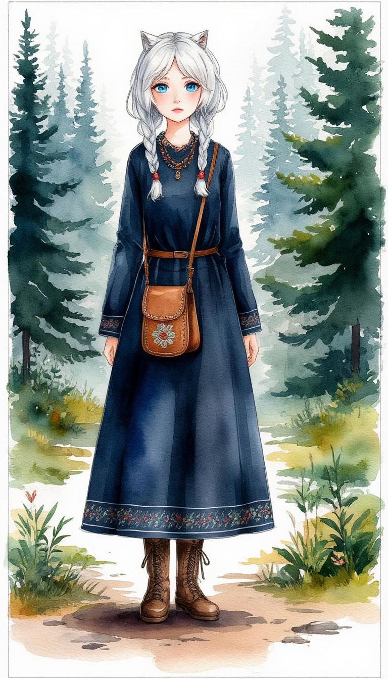 Вкратце история такая: Скади родом из деревни Большая, что в трёх днях пути от деревни где она и встретилась с Николаем. Она не совсем полноценная кошкодевушка - у нее нет хвоста, нет шерсти, только кошачьи ушки. Она значительно слабее чем настоящие зверолюди, совсем как человек.