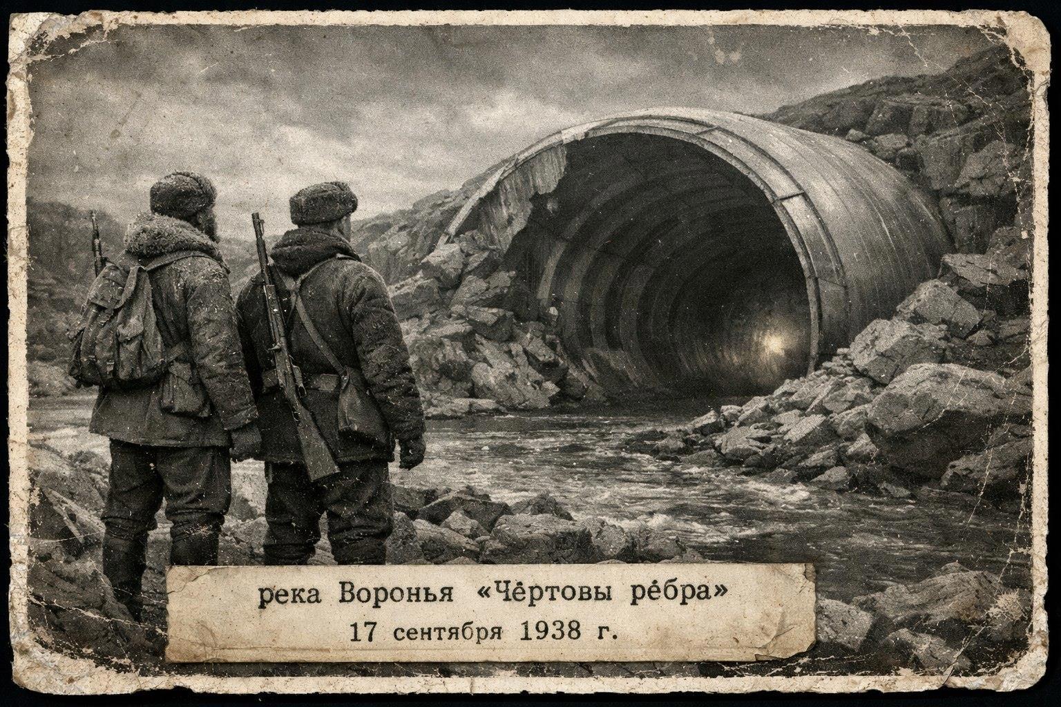 ... «17 сентября сего года, следуя со напарником, Матвеем, по старому промысловому маршруту вдоль реки Воронья, в районе каменистой гряды, известной как «Чёртовы рёбра», заметили следы горного обвала, не отмеченные ранее. Подошли. Сперва подумали – штольня какая, геологи бить стали. Но материала такого… ни разу не видывал. Не камень, не дерево, не сталь привычная. Гладкий, как лёд, но тёплый на ощупь, и цветом – серо-стальной, без единой щели или заклёпки. Размером с железнодорожный туннель, но края… ровные, будто ножом отрезаны. Часть свода в правой стороне обрушилась, видна была набросанная горная порода. Изнутри, из самой глубины, шёл свет. Не от факела, не электрический. Слабый, ровный, чуть голубоватый. Как светляк огромный. Ни шума, ни запаха. Стояли, смотрели минут десять. Матвей хотел подойти ближе, но я удержал. Место неправильное. Решили вернуться к стойбищу, доложить старосте. Больше к тому месту не ходили»