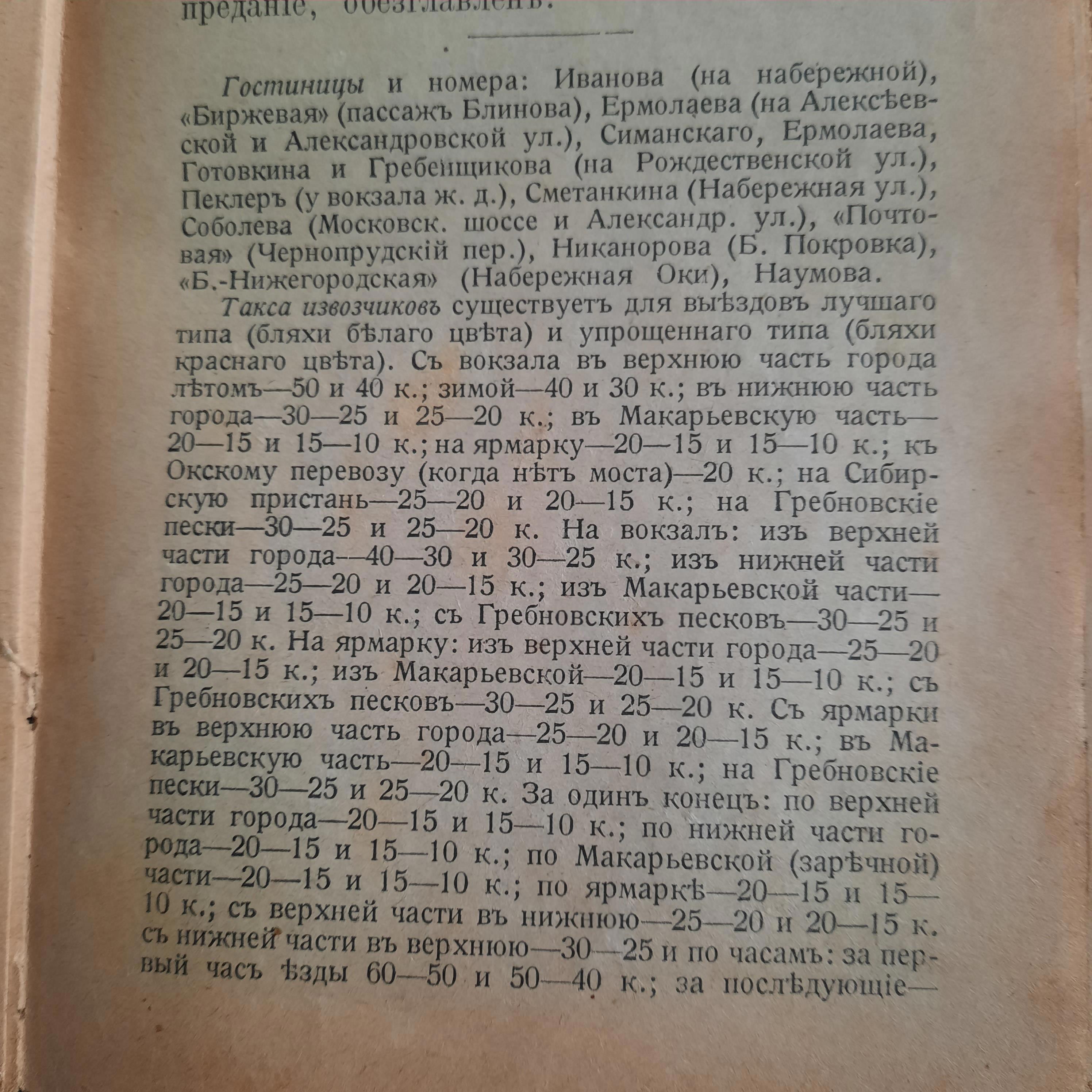 Цены на гостиницы, извозчиков, трамваи и тп.