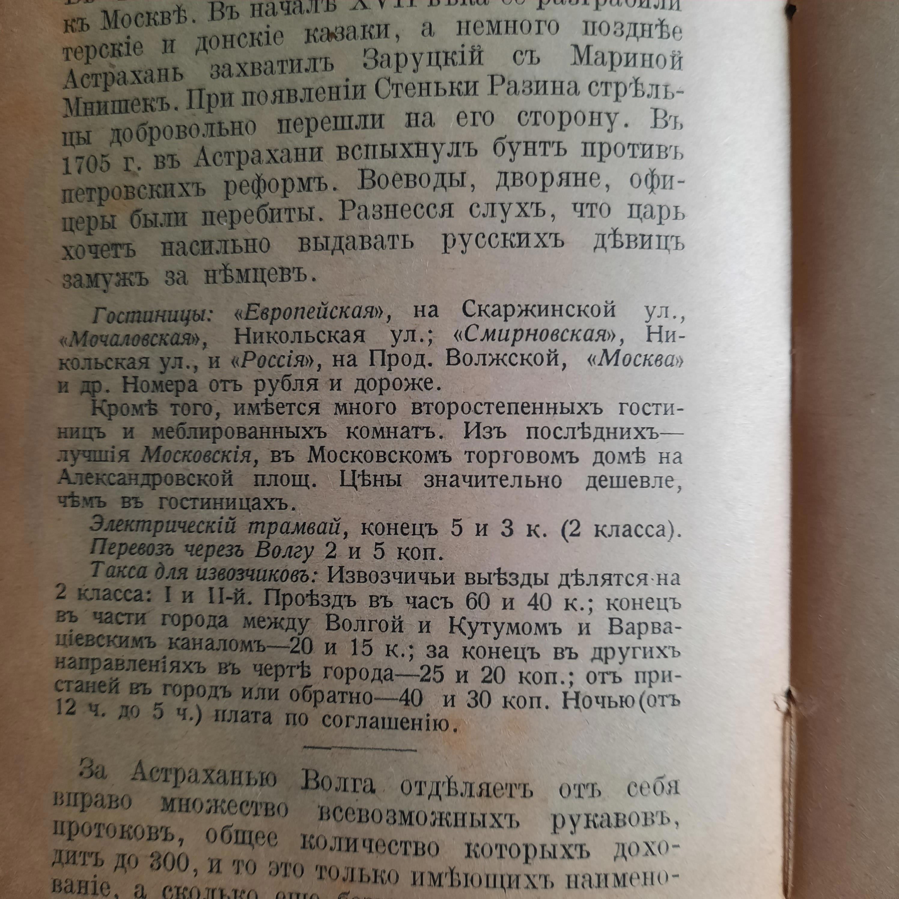 Если интересна иная информация из книги, могу поискать. Путеводитель охватывает почти все селения вдоль Волги по состоянию на 1915 год. Периоды до тоже упоминаются. Есть интересные детали городов, судоходства, какие газеты выпускались, какие гостиницы работали, сколько доходов имел тот или иной город, небольшие исторические справки и прочее.