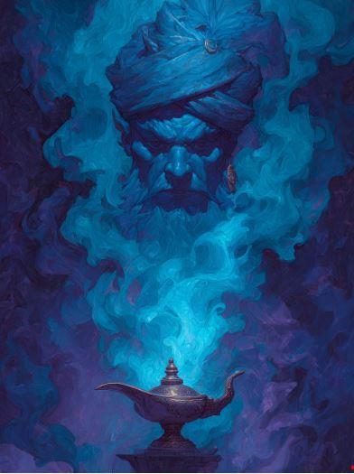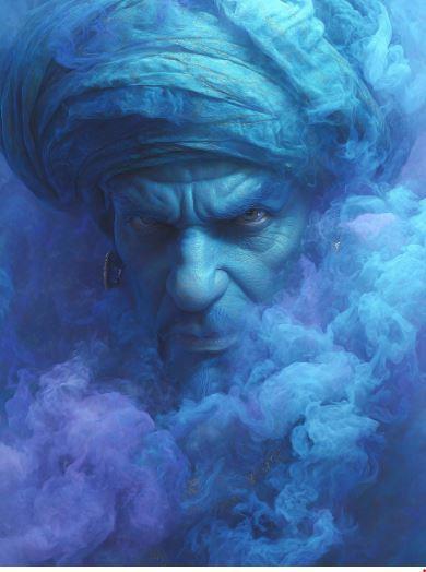 Вокруг лампы заклубился синий дым, и мы тут же замолчали. Из дыма соткалось лицо представительного мужчины в тюрбане. Он с интересом оглядел содержимое кареты, уставился на Гастона и елейным голосом спросил: