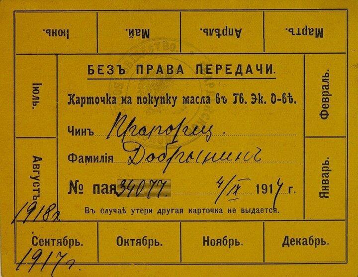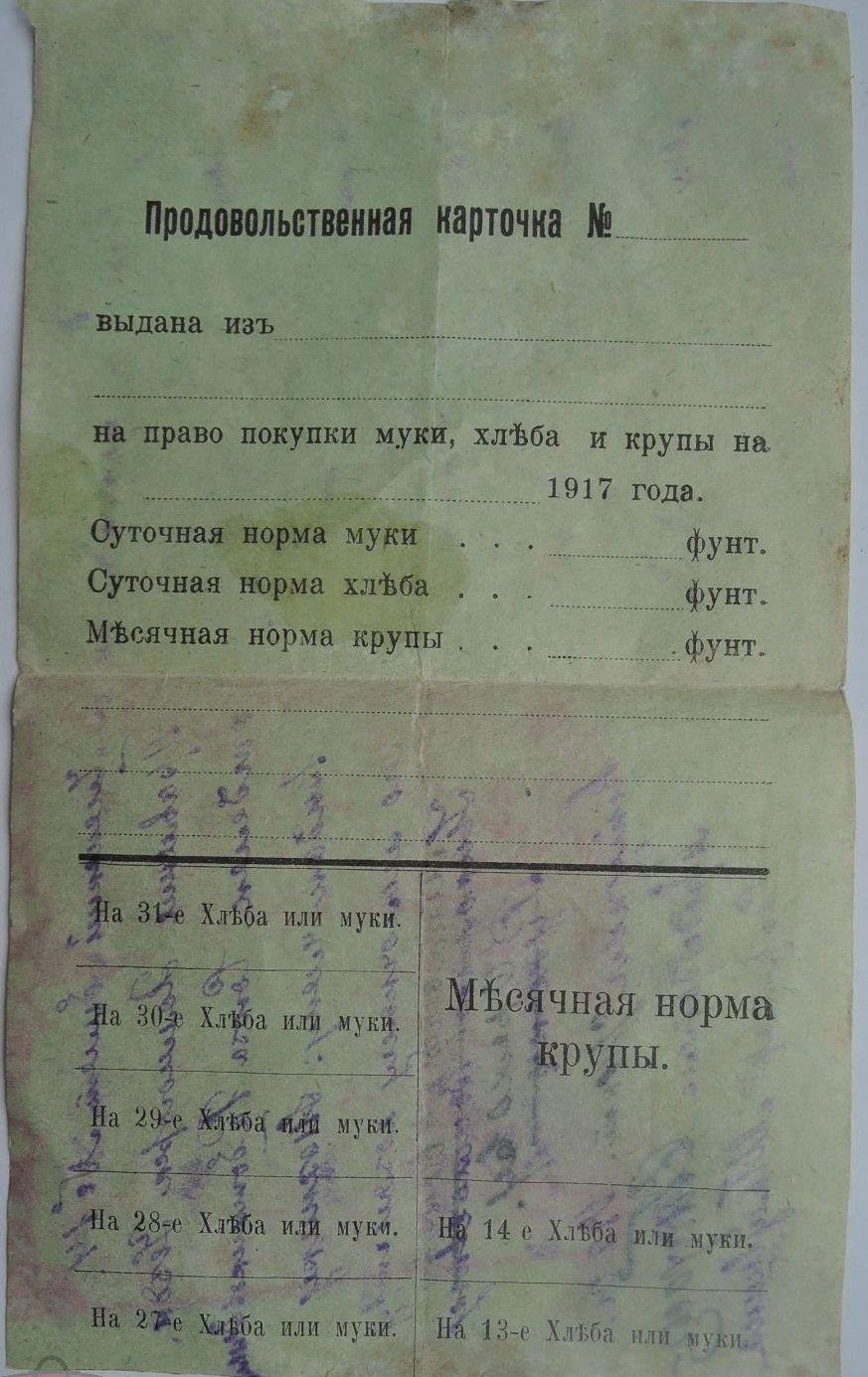 Автор: СибирякВ Российской империи, и при Временном правительстве, во время ПМВ не было карточек на продукты!