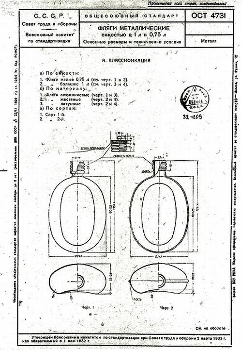 В 1931-1932 годах для РККА была разработана новая фляга с таким же объемом, но уже с резьбовой крышкой. Однако выпуск таких фляг на заводе «Красный Выборжец» начался только в 1937 году. Отличительной особенностью фляг довоенных выпусков является наличие пяти витков резьбы на горлышке и резьбовой крышке. Фляги выпускались из неокрашенного металла. До 1941 года цепочка, удерживающая пробку, крепилась к горлышку фляги за проволочное соединительное кольцо: С 1941 года проволочное кольцо заменили штампованным. Начиная с 1940 года, фляги окрашивались в защитный цвет. Вес фляги составлял 183 грамма.