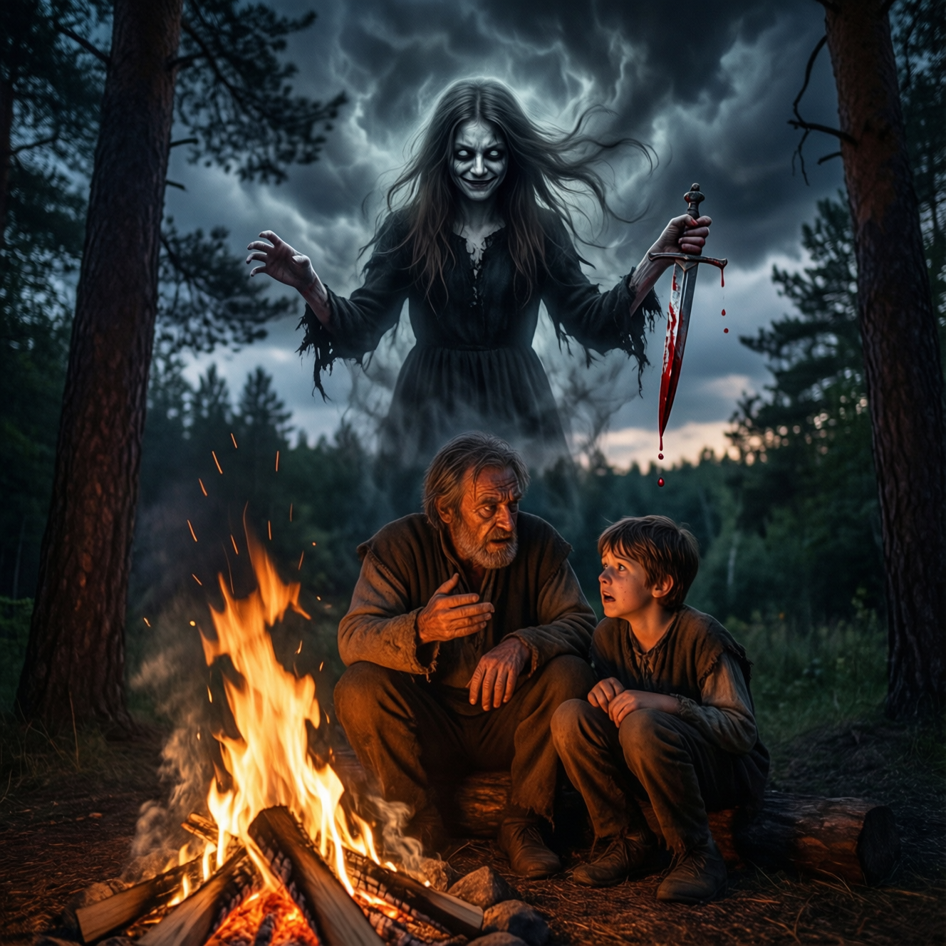 З.Ы. Представилась мне такая картина как дедушка в Тарлосе рассказывает внукам сказку про Элайну Великолепную, добрую волшебницу, и показывает им бережно хранимый её портрет, а дедушка гарл своим внукам рассказывает страшную сказку про злую ведьму Элайну Ужасную.
