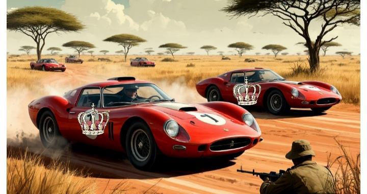 И вот начались гонки. Снайперы заслышав рёв двигателей, приготовился к ведению огня но когда появились первые три машины они впали в сомнения ибо на всех объектах сияли короны. Короны были на бортах и следующих машин. Так что покушение не состоялось.