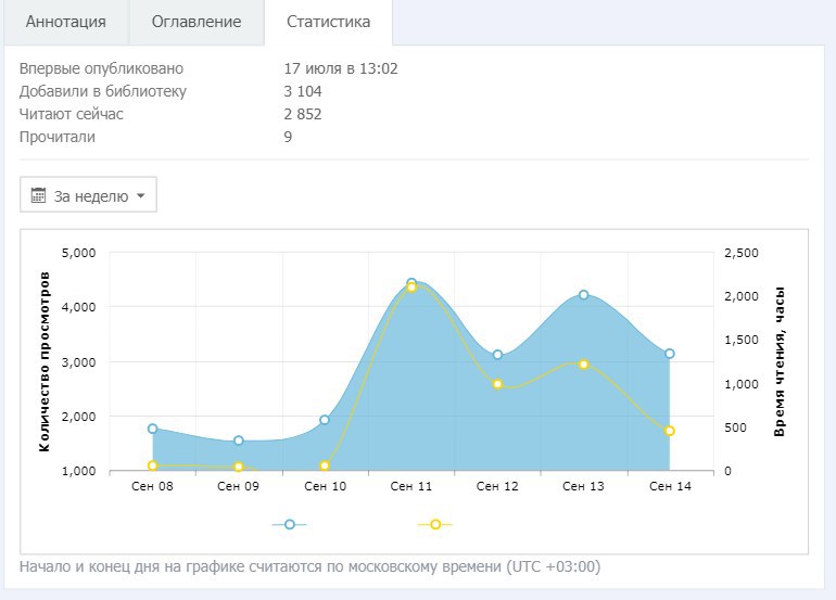 В данном случае интересно даже не количество просмотров и часов чтения, а количество добавлений в библиотеку, так как оно говорит о количестве зарегистрированных пользователей АТ. То есть рассуждения из разряда "никто не будет регистрироваться, чтобы просто оставить коммент или лайк" – они все мимо кассы. Будут. Если захотят.)