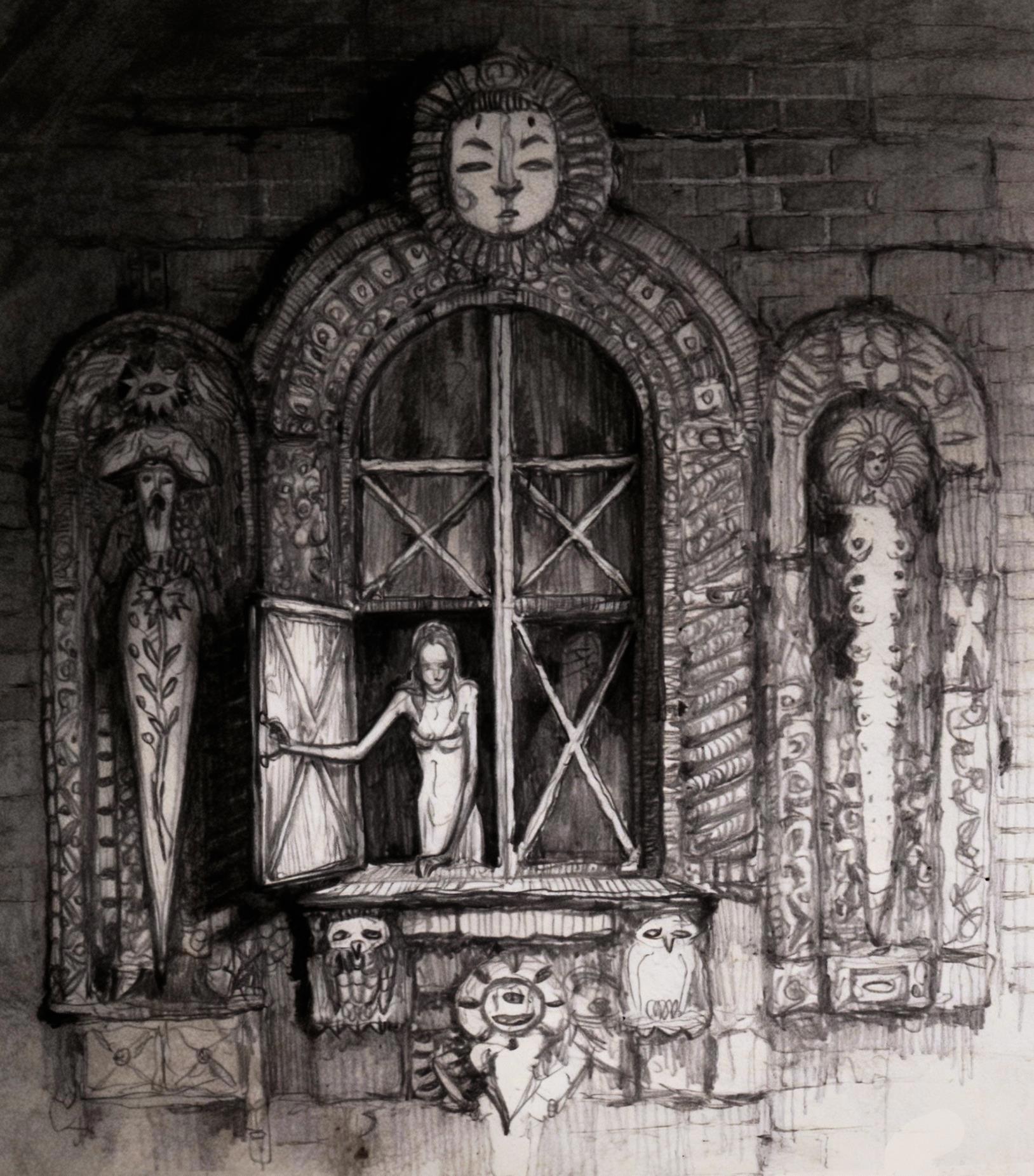 Иванка в окне дома на набережной. Из четвертой главы. набросок.