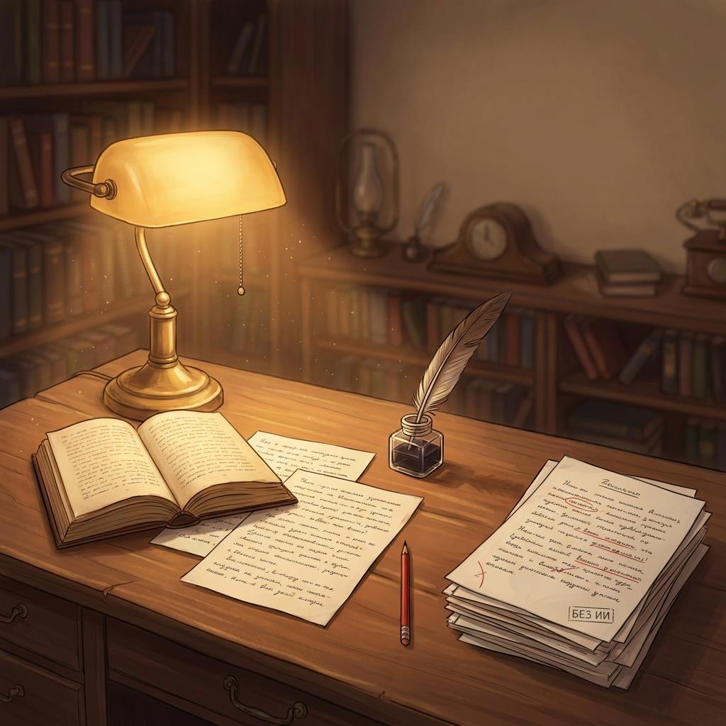 Все наши произведения мы пишем без использования ИИ и каких-либо генераторов текста.