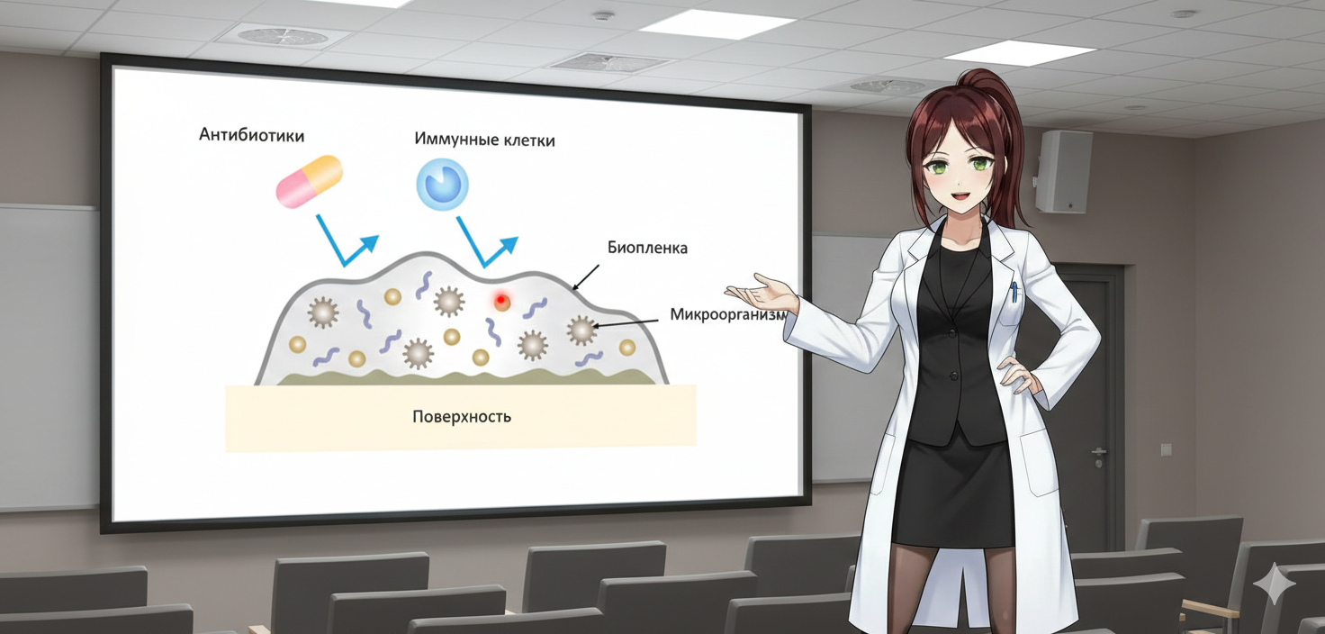 Именно такую «крепость» мы штурмовали на экзамене в микромире. Те «здания», которые нам нужно было уничтожить? Это и были очаги патогенных биоплёнок. И это объясняет, почему одна-единственная бактерия может быть уязвима, а их сообщество — кошмар для иммунитета и антибиотиков.
