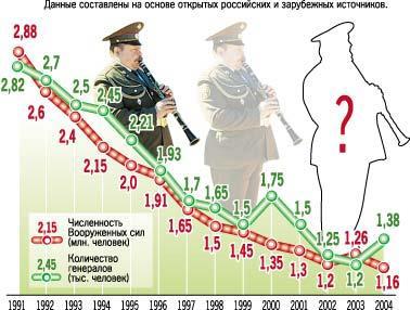 В 1997 году на 1,7 млн солдат — 2865 высших офицеров.