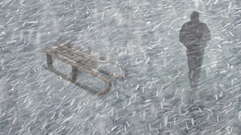 Мимо нас с визгом промчатся на цветных ледянках люди, держа воздушные шары, шары будут биться, отрываться от верёвочек и скользить, и прыгать по белому снегу.