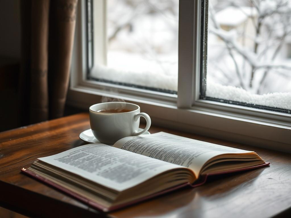 Холод за окном, уют внутри, и только вы, книга и чашка кофе. Идеальная метафора того самого «островка спокойствия», который мы ищем в суете.