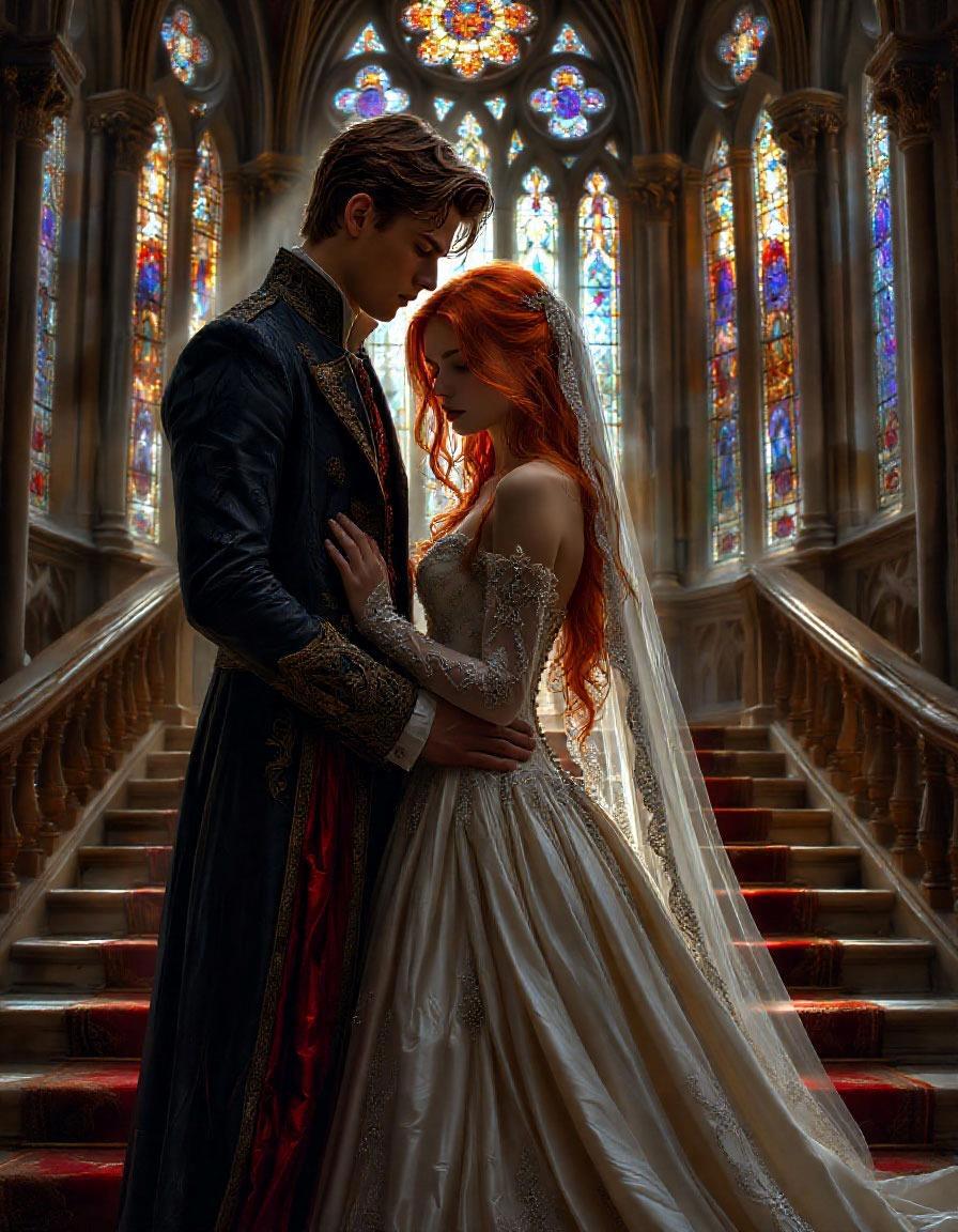 В ярких, разноцветных красках, которые выводили солнечные лучи, проходя сквозь витражи, перед священником стояли двое. Его Величество король Мстислав в камзоле расшитым золотой нитью и ярко-алой мантии держал за руку бледную рыжеволосую девушку, скрытую от всеобщих глаз под наброшенной полупрозрачной фатой. За стенами собора народ ликовал и радовался этому счастливому прекрасному союзу.