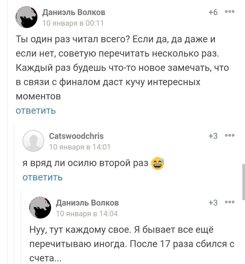 Ну а какой-то чел перечитал ВЕСЬ этот сериал уже больше 17 раз(!!!)