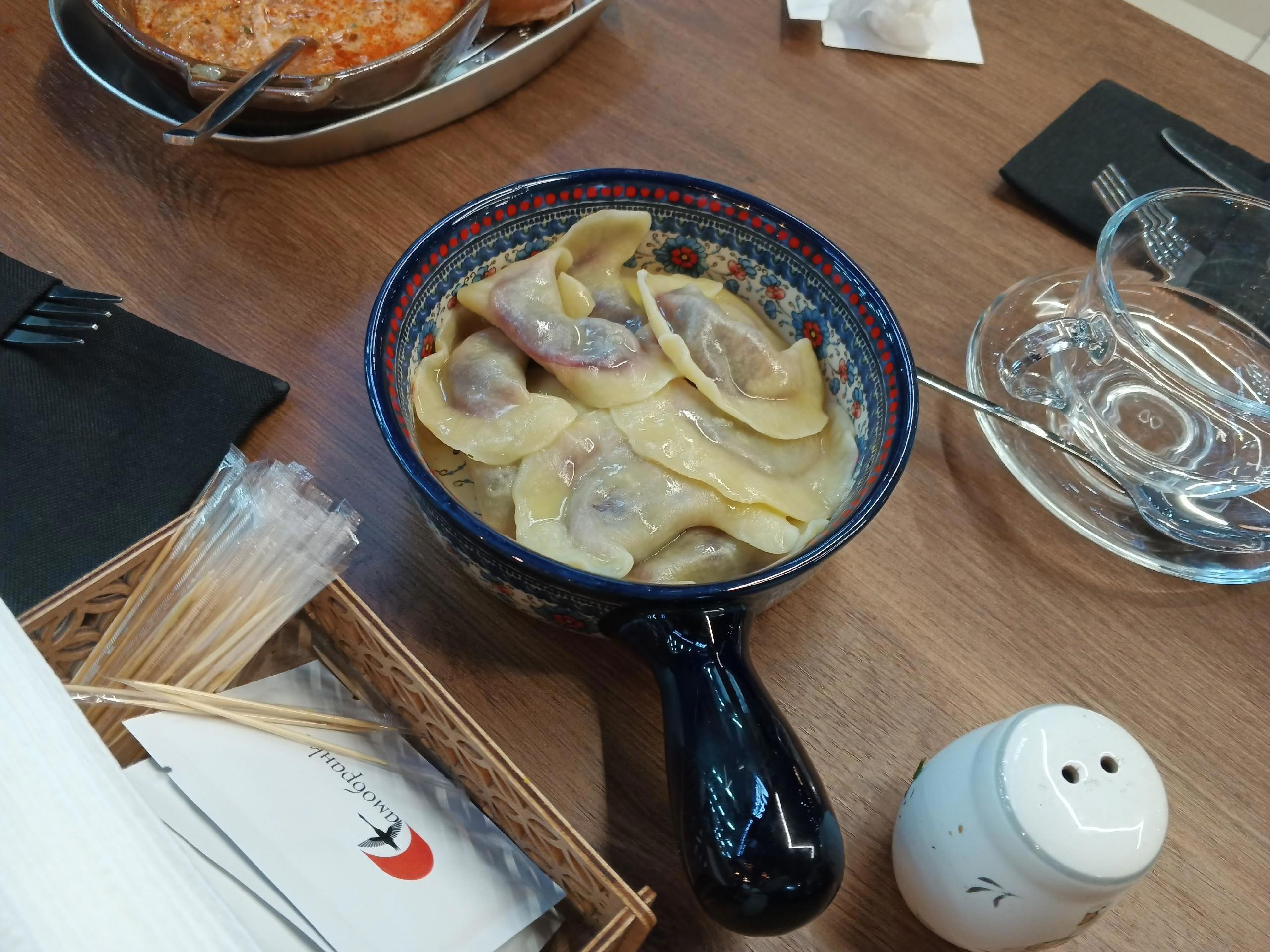 Что вам сказать. Заказали мы не так чтобы много: суп харчо, пельмени, пюре с куриными котлетами, вареники с вишней и чай.