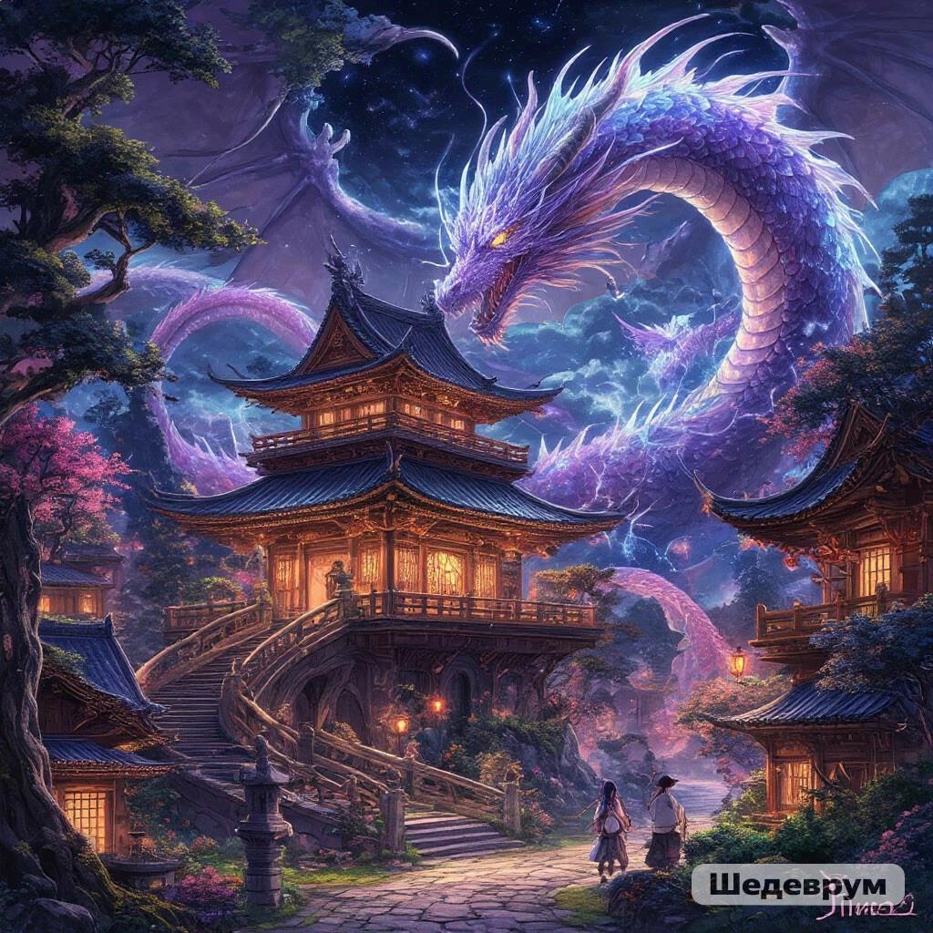 Автор: Сиротенко АндрейСлушайте, добавление в промт слова "люминесценция" творит чудеса. Вы посмотрите только, какой чудный вышел дракон на фоне японской тематики