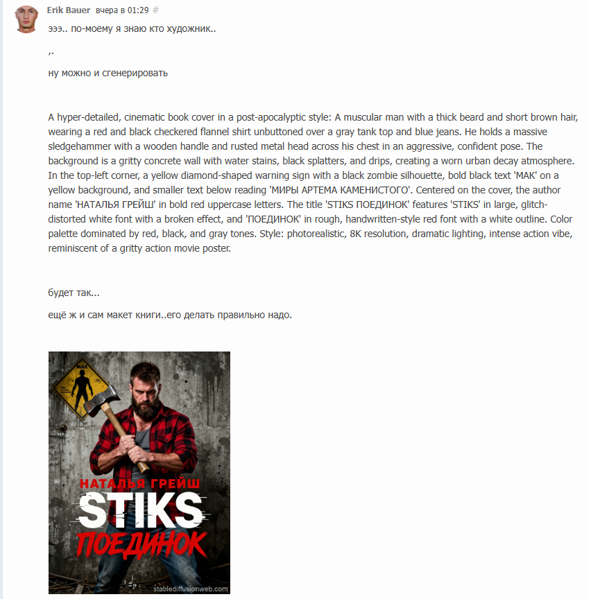 Позже, в другой теме, местные умельцы, прискакавшие на защиту викинга, сами показали что такое изображение генерируется за пару минут подходящим промптом: