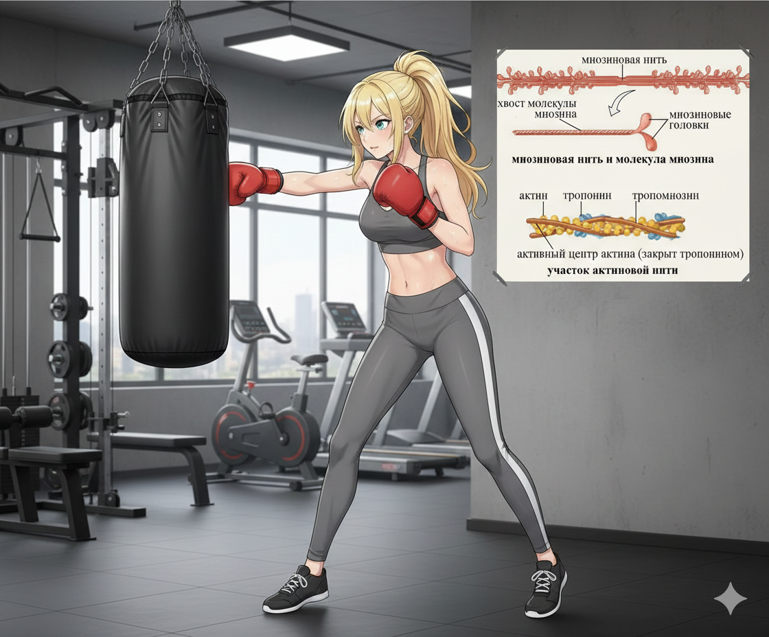 На лекции по биохимии наконец-то разобрались с тем, что на самом деле происходит, когда я бью. Это не просто «сила удара». Это целый каскад молекулярных событий: