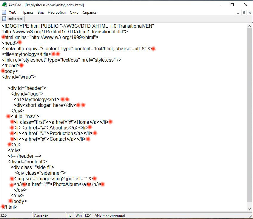 В блокноте при помощи того же Ctrl+O открываем файл индекс и получаем вот это: