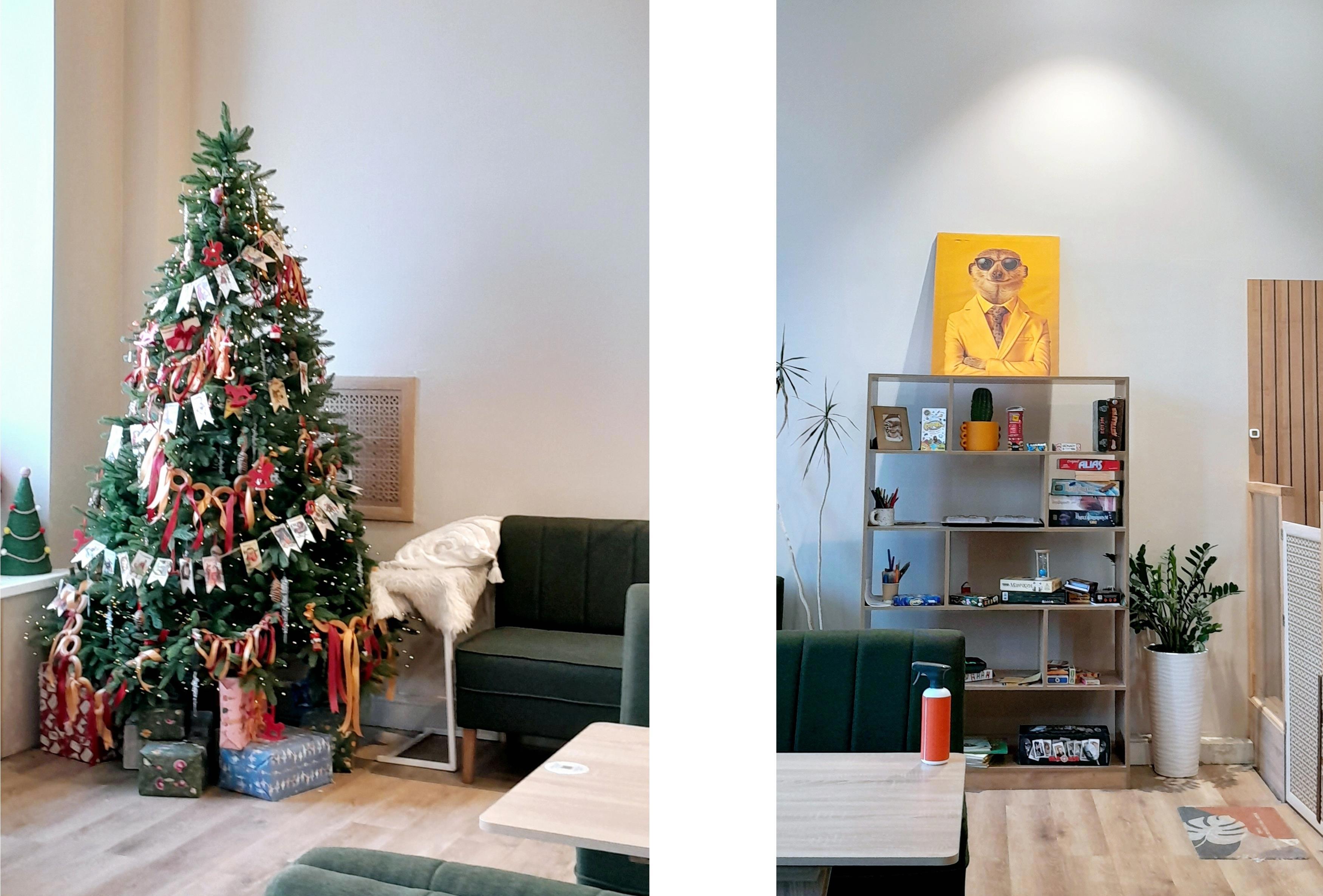 Живут сурикаты в вольерах, а для встреч с посетителями есть специальные помещения – ясли. С нами провели инструктаж, обработали наши руки специальным спреем, чтобы убрать лишние запахи, и проводили в комнату-ясли, где находились четыре зверька. Туда мы вошли без обуви, в носках. Надо заметить, что в антикафе очень чисто!