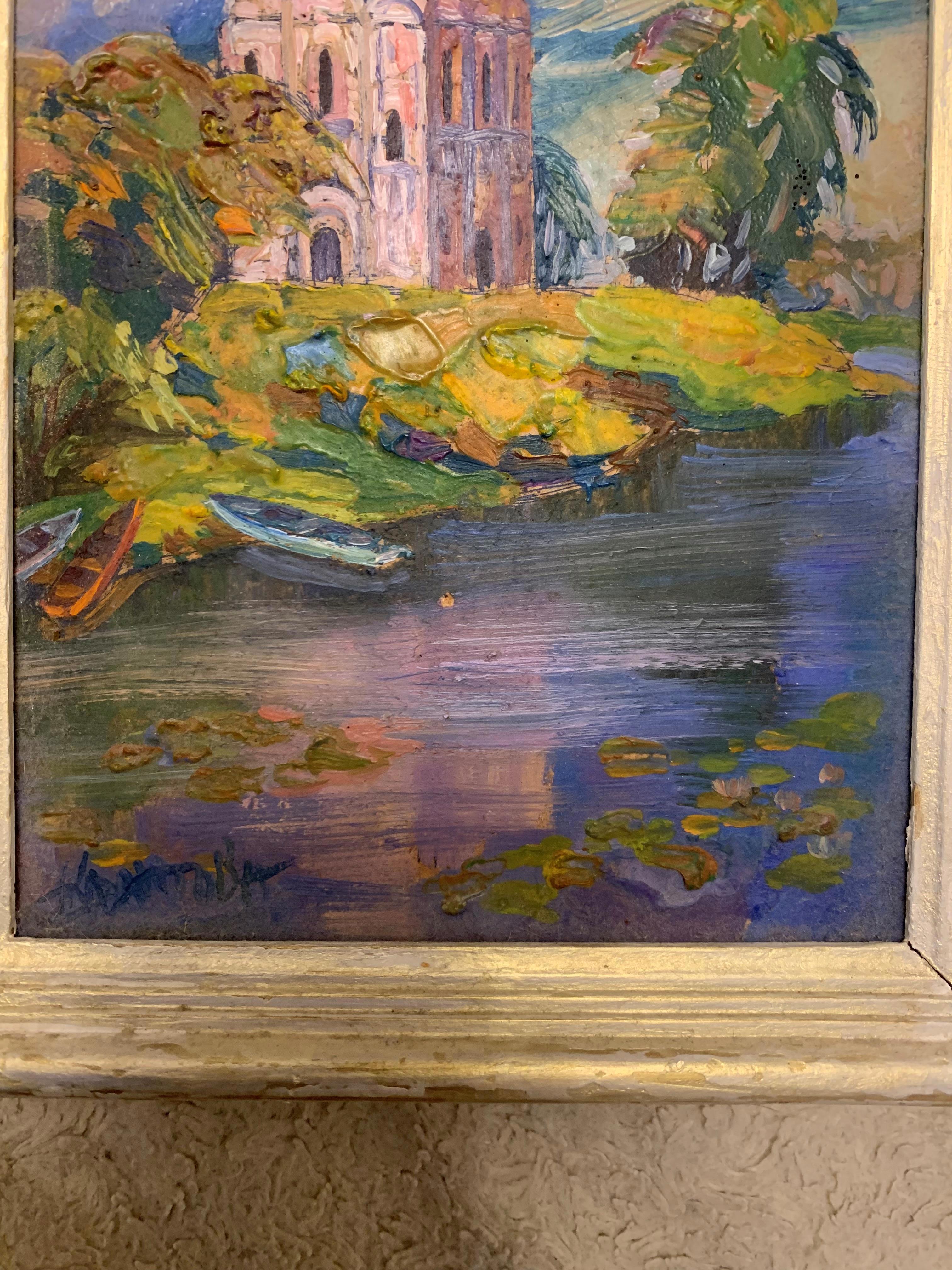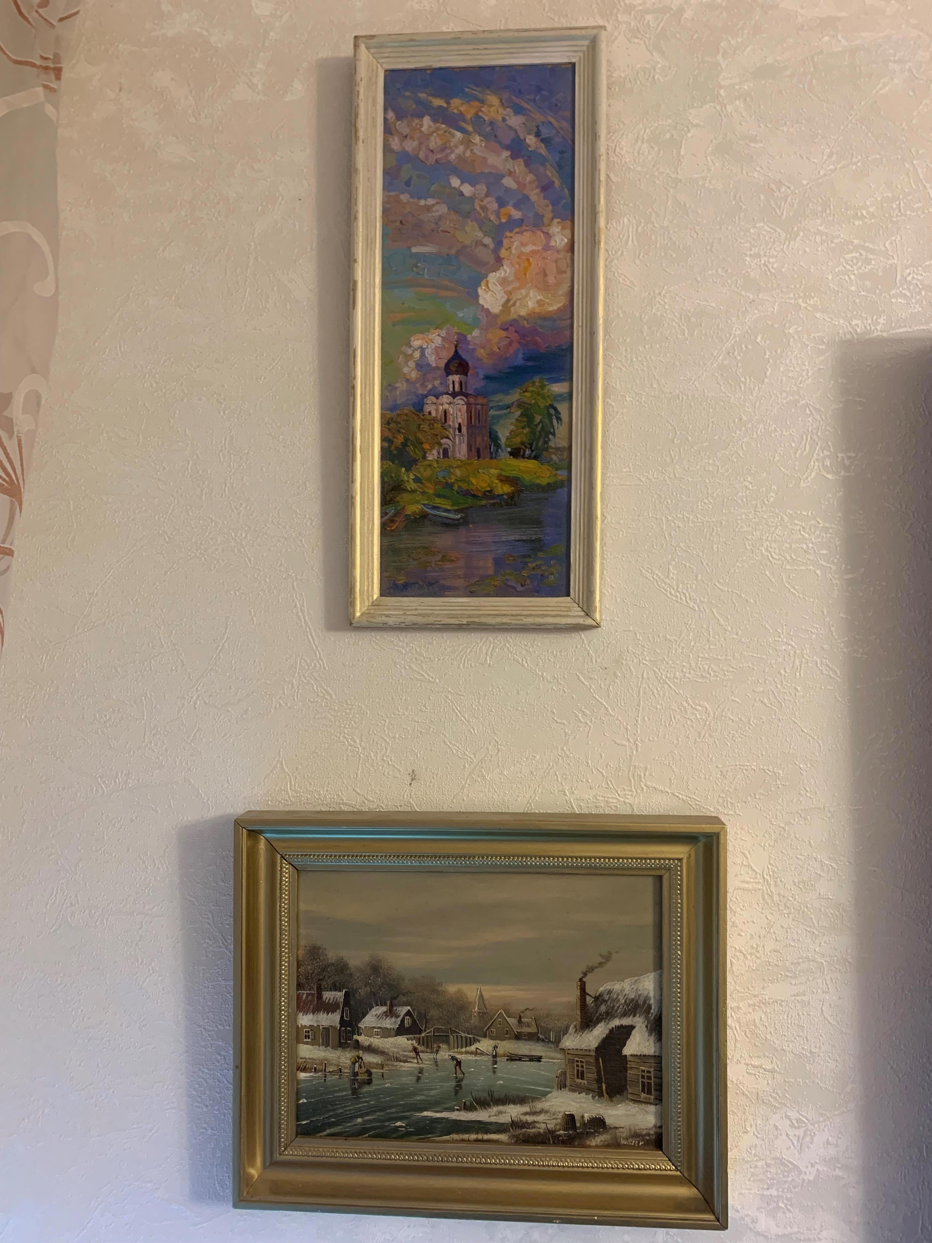И, вот как это смотрится рядом с картиной, выполненной преимущественно в технике "импасто". Да, небо на этой картине- "Храм Покрова-на Нерли" Ангелины Курантовой, тоже великолепно. Да, за счет смешения и наложения красок, но не лессировки.