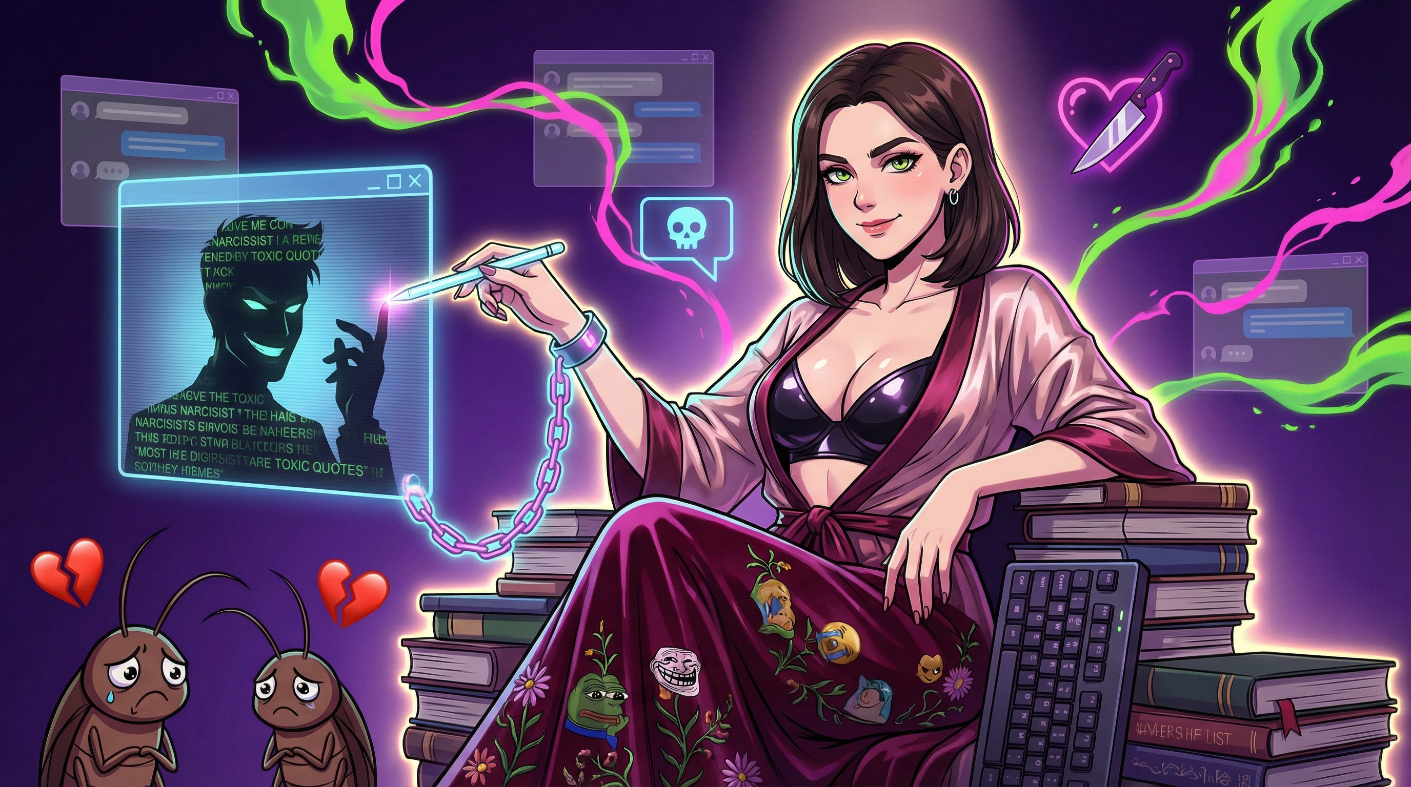 Несмотря на всю сумасшедшесть токсичных личностей, обычно именно эти шелковые мерзавцы и мерзавки оставляют в нас след, который сложно стереть. Мы тут с одним товарищем завели беседу про проработку персонажей — которой не хватает лично мне (факт, и на том сошлись). И было отмечено, что у многих авторов-девочек есть косячок: девушки — проработанные и сложные, а мужики — либо тряпки, либо токсы (не все подряд, конечно, но тенденция).