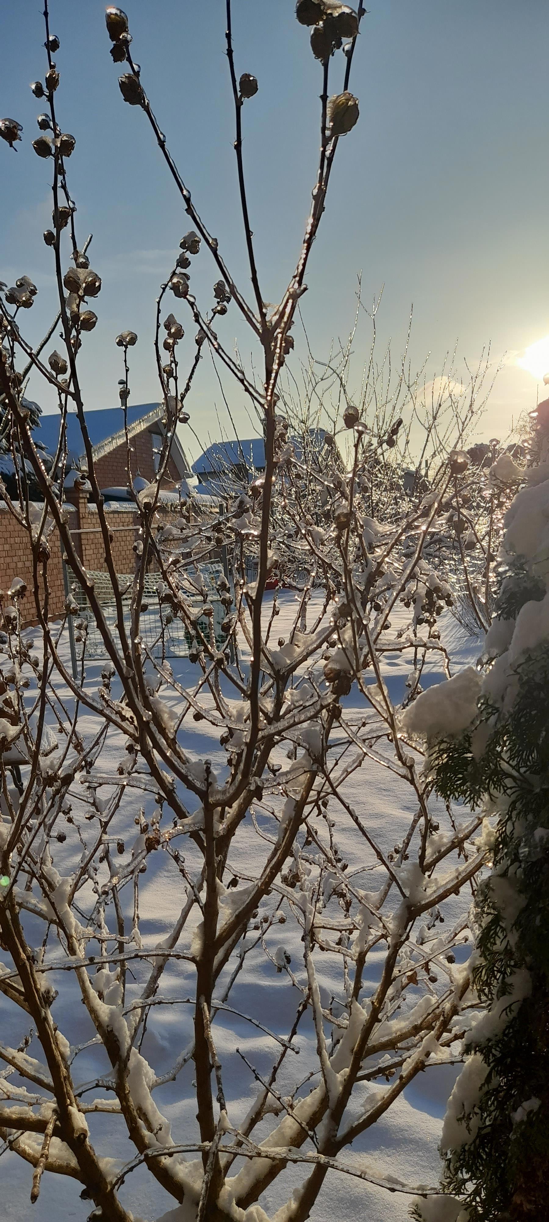 Автор: ЗагадкаЭтот год бьёт рекорды по холодам, снегу и зимней погоде. Сначала выпал снег на Новый год, был мороз - мороз и зимняя сказка. Потом неделя нормальной, привычной зимы с солнцем, дождём и плюсовыми температурами. А потом снова ударили морозы и выпал снег. Только его разгребли и приспособились жить в заснеженной местности, пошел ледяной дождь, наломал веток с деревьев и наделал красоты.