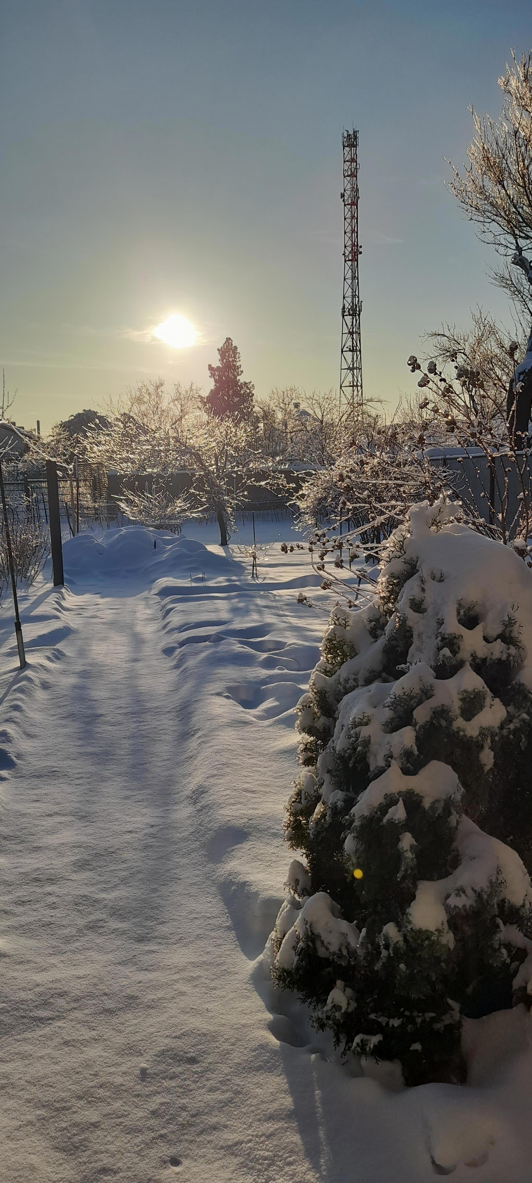 Сугроб в центре тропинки это снег, который мы с сыном вывезли в огород.