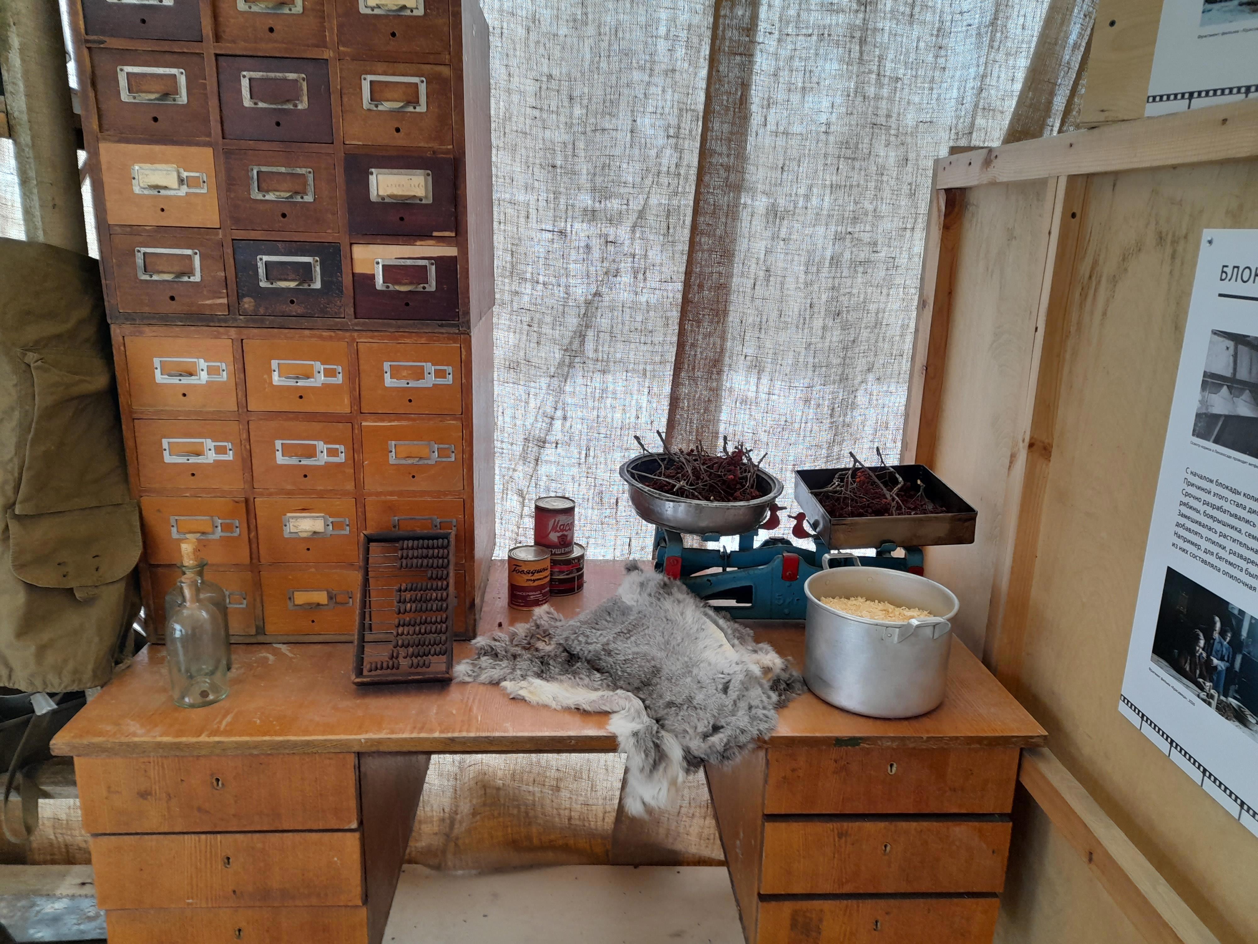 Картотека куда ни шло, стол выпуска 70 годов. Рядом с весами - шкурки - в них зашивали опять же опилки и всякое такое, сдабривая рыбьим жиром - хищники ели. Только гриф-стервятник Верочка отказывалась есть суррогаты - для нее пришлось ловить крыс. Такая разборчивая птичка. Пережила блокаду, да.